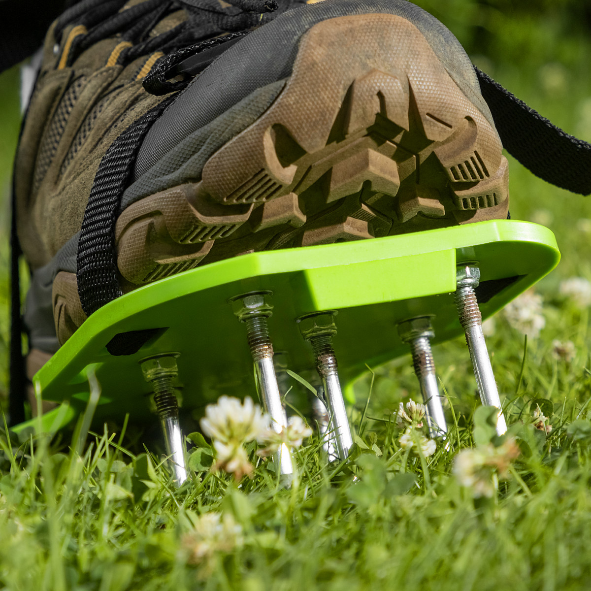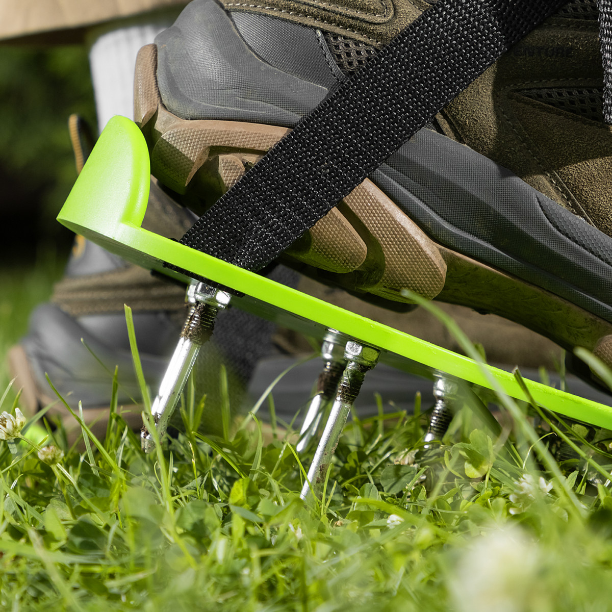 • Удобное использование — аэратор выполнен в форме платформ для ног с длинными стержнями, достаточно надеть их и походить по участку.