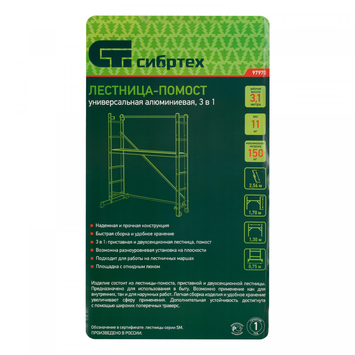 Лестница-помост 3 в 1 97970 необходима для проведения малярных и штукатурных работ на высоте нескольких метров. Площадка выдерживает нагрузку 150 кг, поэтому на ней может расположиться мастер с необходимыми инструментами. Помост трансформируется в двустороннюю стремянку и раздвижную приставную лестницу, что расширяет возможности его использования.