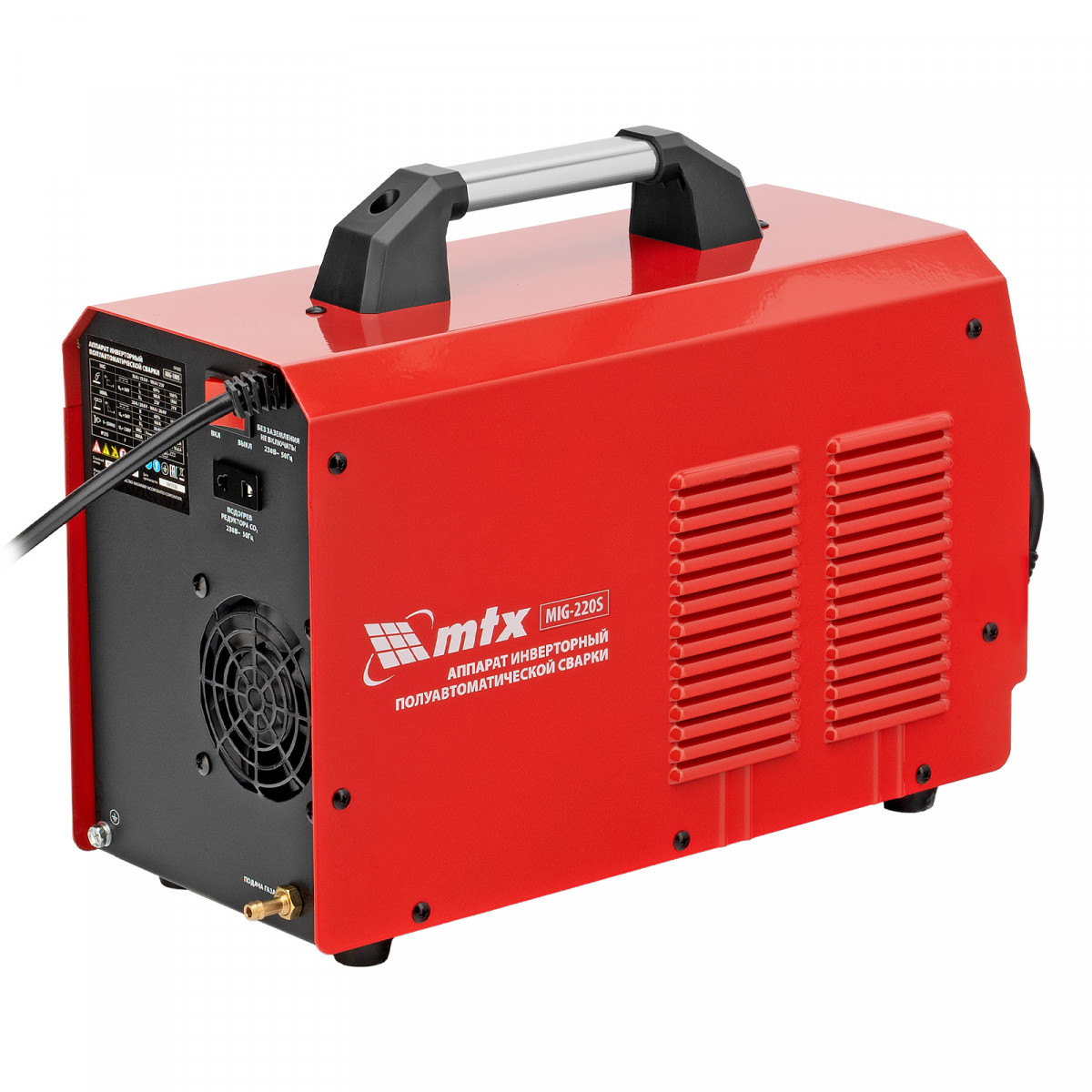 Инверторный аппарат полуавтоматической сварки MTX MIG-220S 94304, предназначенный для сварки на максимальном токе до 220 А, имеет продолжительность включения 60% и совместим с катушками весом до 5 кг. Используется для работы со сталями, черными и цветными металлами. Сварочный аппарат изготовлен с использованием передовой технологии IGBT, позволяющей получать стабильный сварочный ток на выходе. Аппарат имеет высокий КПД при низком энергопотреблении, способен работать при пониженном до 180 В напряжении.