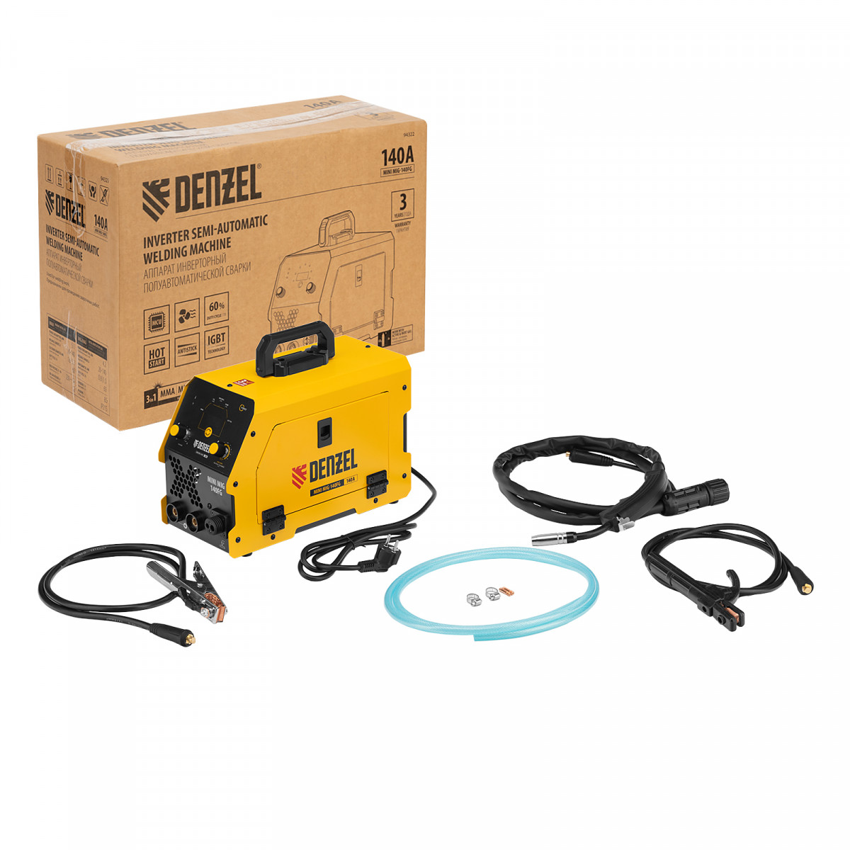 Аппарат инвертор. полуавтомат. сварки Mini MIG-140FG, 140 А, ПВ 60% Denzel