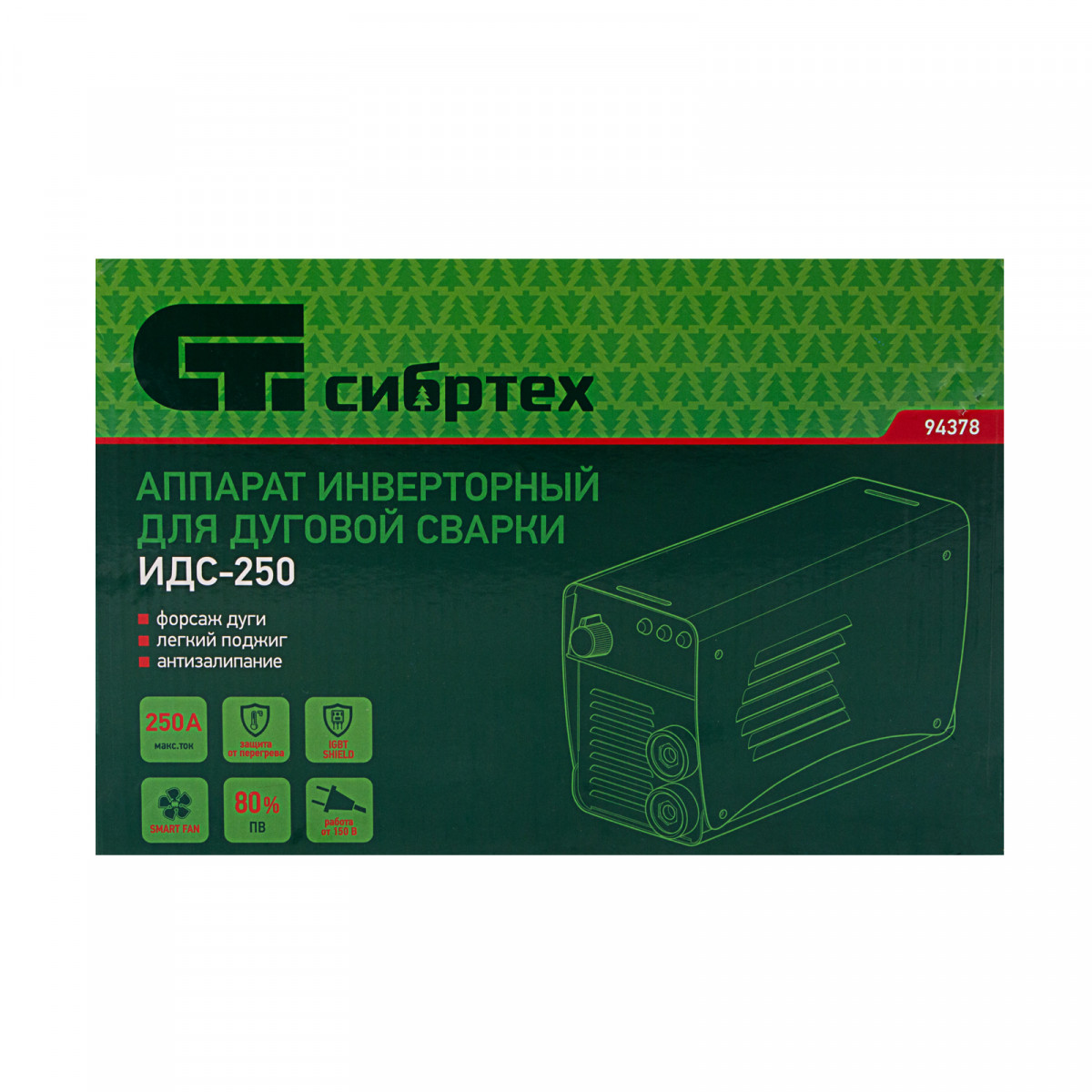 Аппарат инверторный дуговой сварки ИДС-250, 250 А, ПВ 80%, диаметр электрода 1.6-5 мм Сибртех