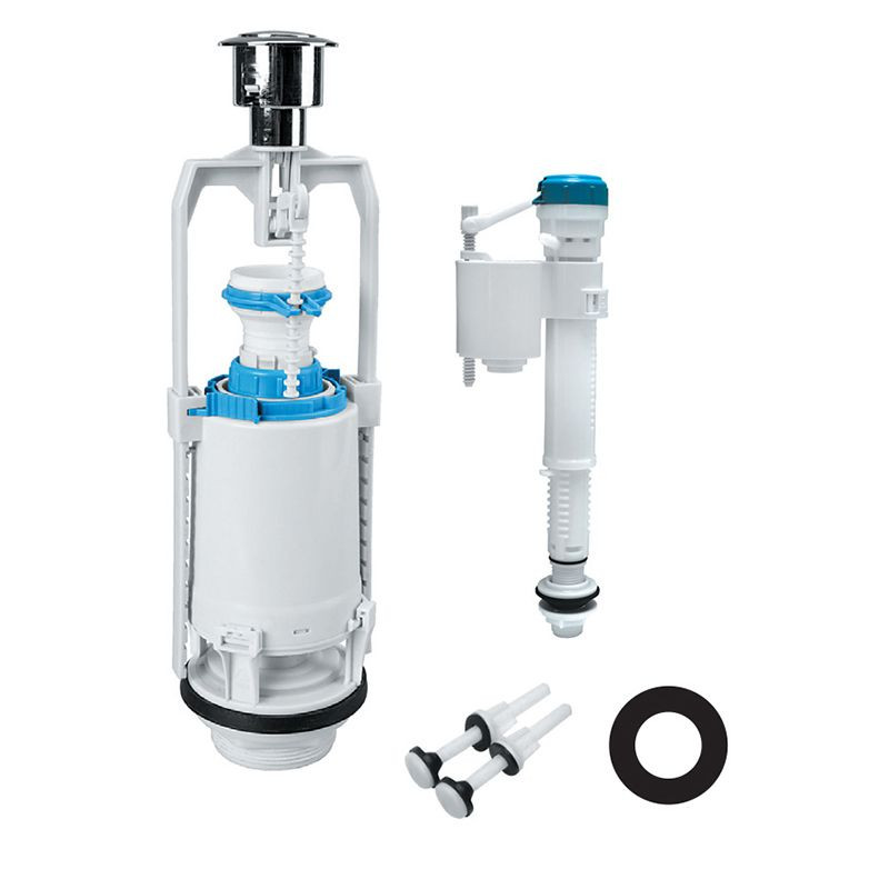 Сливная арматура с хромированной кнопкой, для бачка унитаза с нижним набором воды.