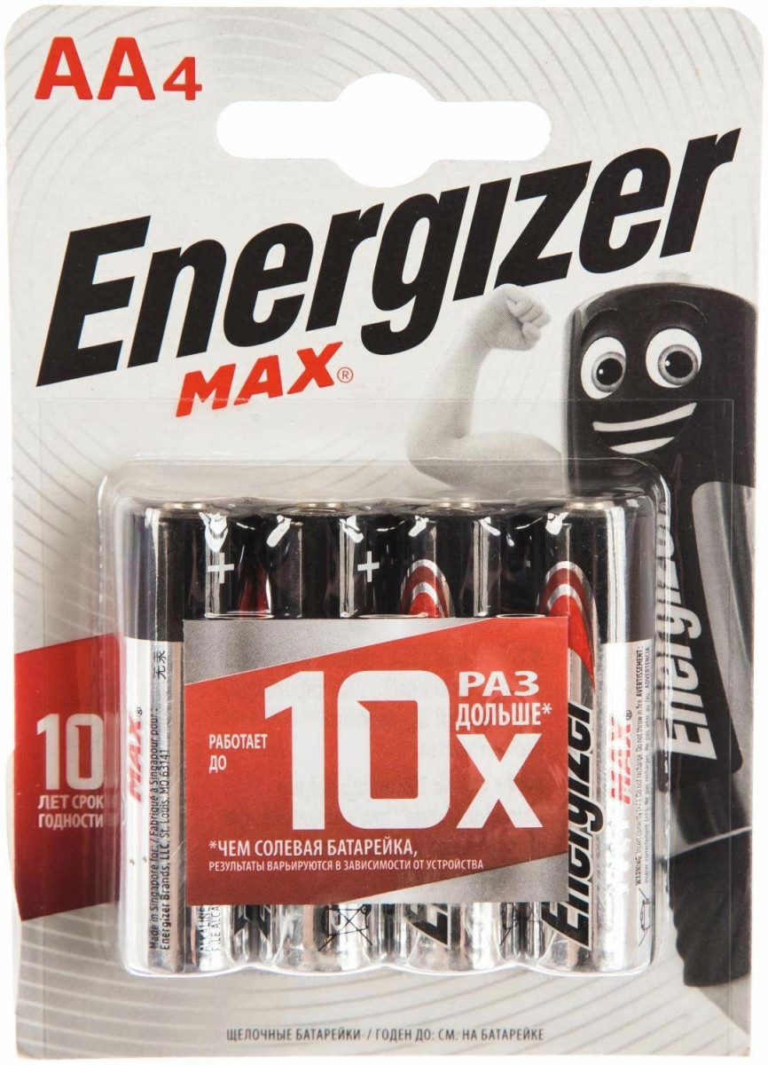 Батарея Energizer MAX E91/AA BP4 создана с применением современных технологий. Благодаря этому она имеет ёмкость на 30-45 % больше, чем у источников питания предыдущего поколения. Это делает её подходящей для использования в устройствах с высоким энергопотреблением – например, фотоаппаратах или радиоуправляемых игрушках.