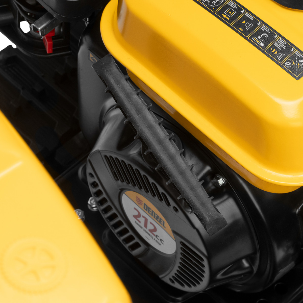 • Возможность увеличения ширины захвата до 711 мм — на кожух шнека можно установить подрезатели Denzel 97102 (не входят в комплект поставки).