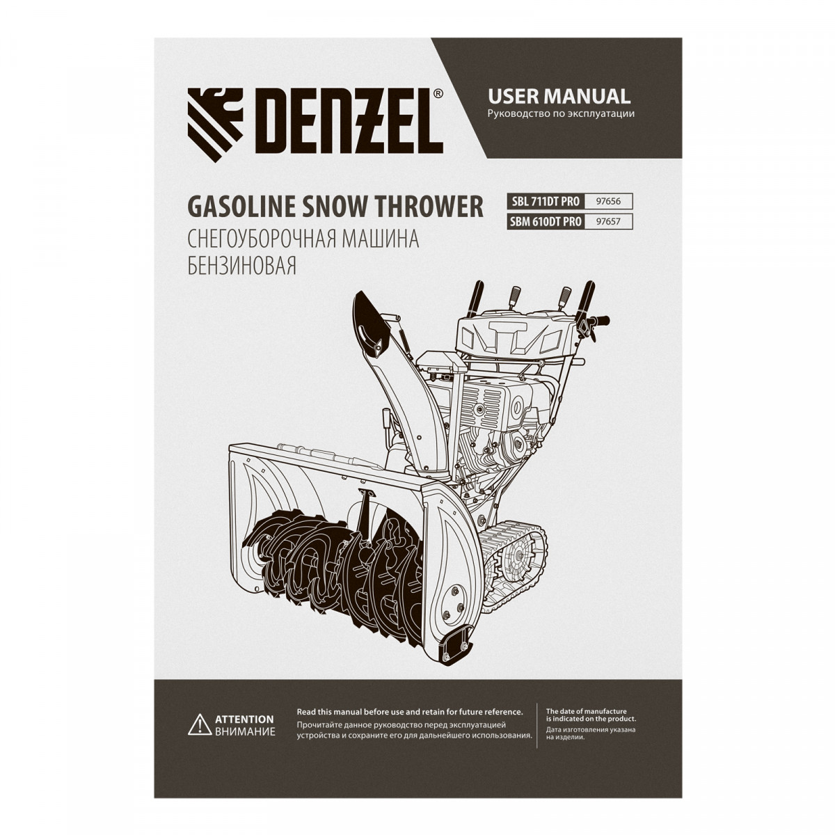 Бензиновая снегоуборочная машина SBM 610DT PRO, 212cc, гусеницы, эл.старт, блок. дифф. Denzel