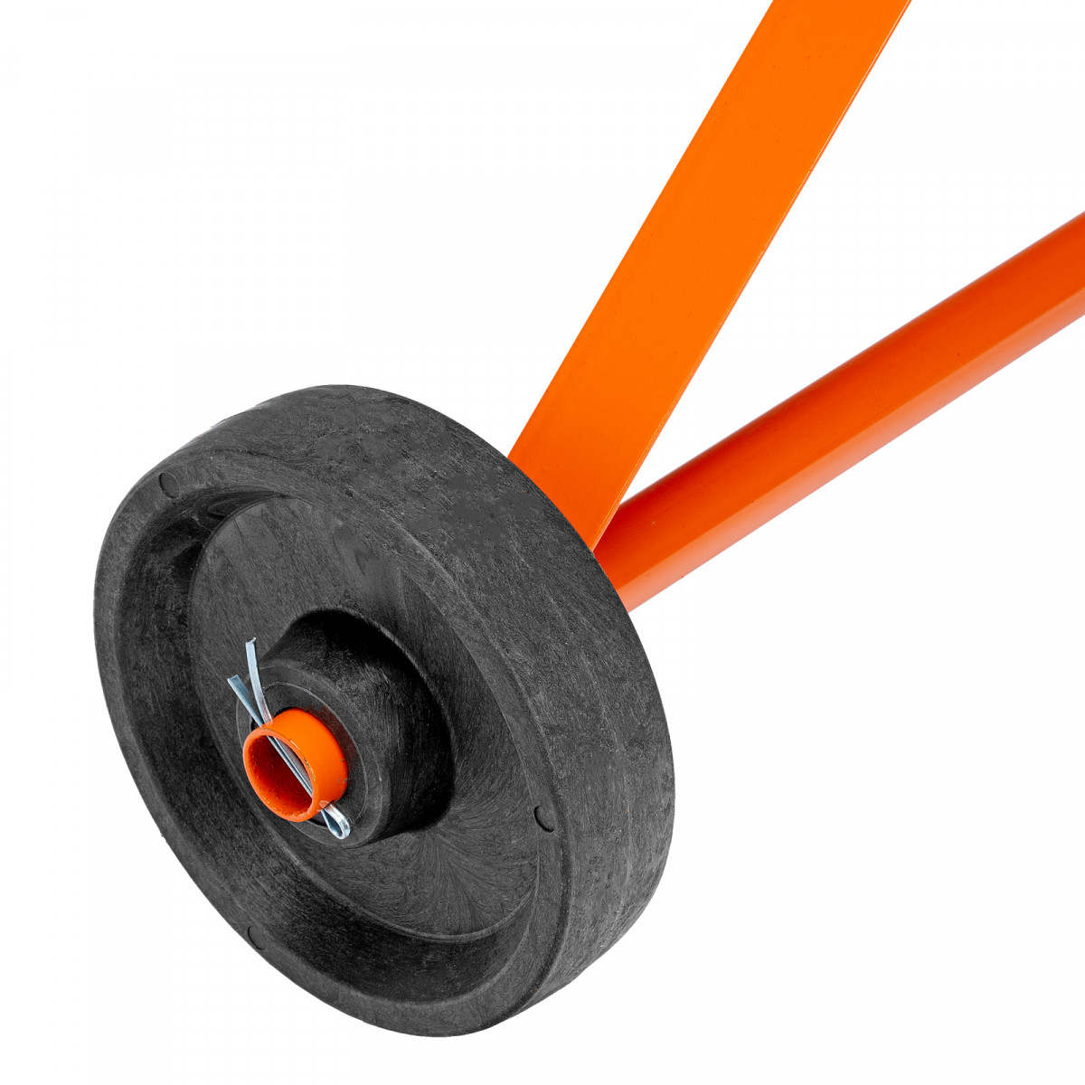 - Удобная загрузка и выгрузка смеси — барабан наклоняется при помощи маховика и легко фиксируется в нужном положении.