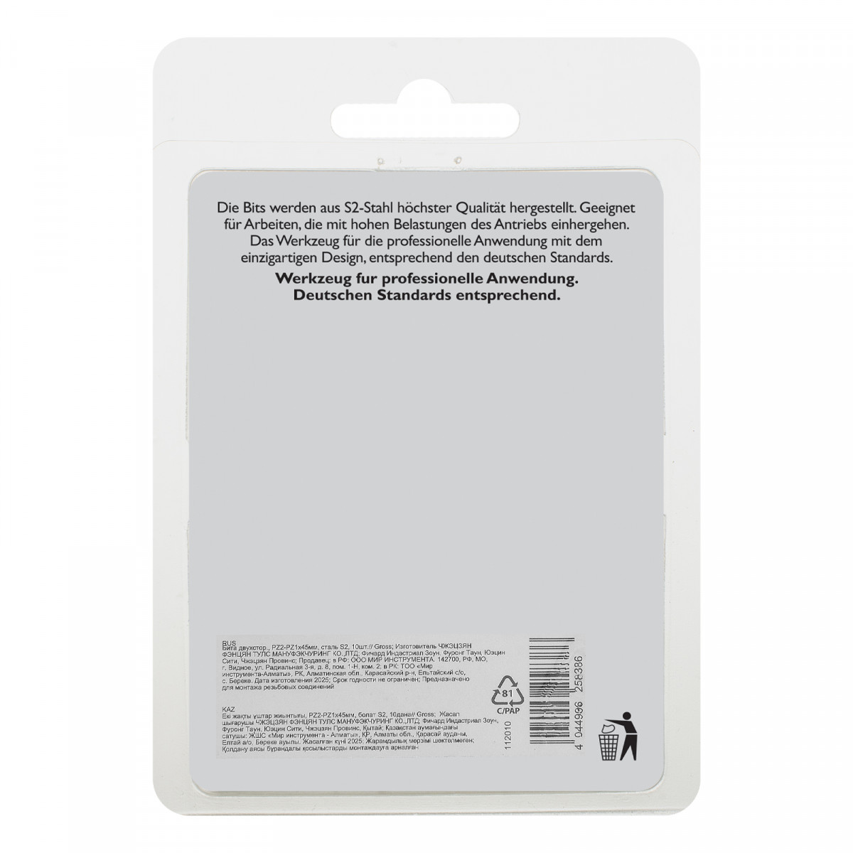 Бита двухстор., PZ2-PZ1х45мм, сталь S2, 10шт. Gross