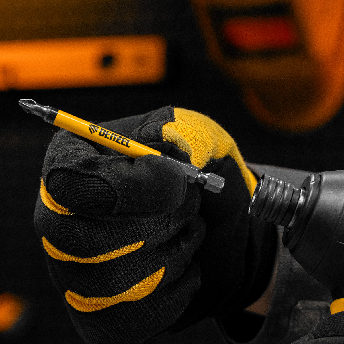 • Устойчивость к деформации при больших нагрузках — биты изготовлены из японской легированной стали S2 повышенной прочности и закалены до твердости 58 HRC.
