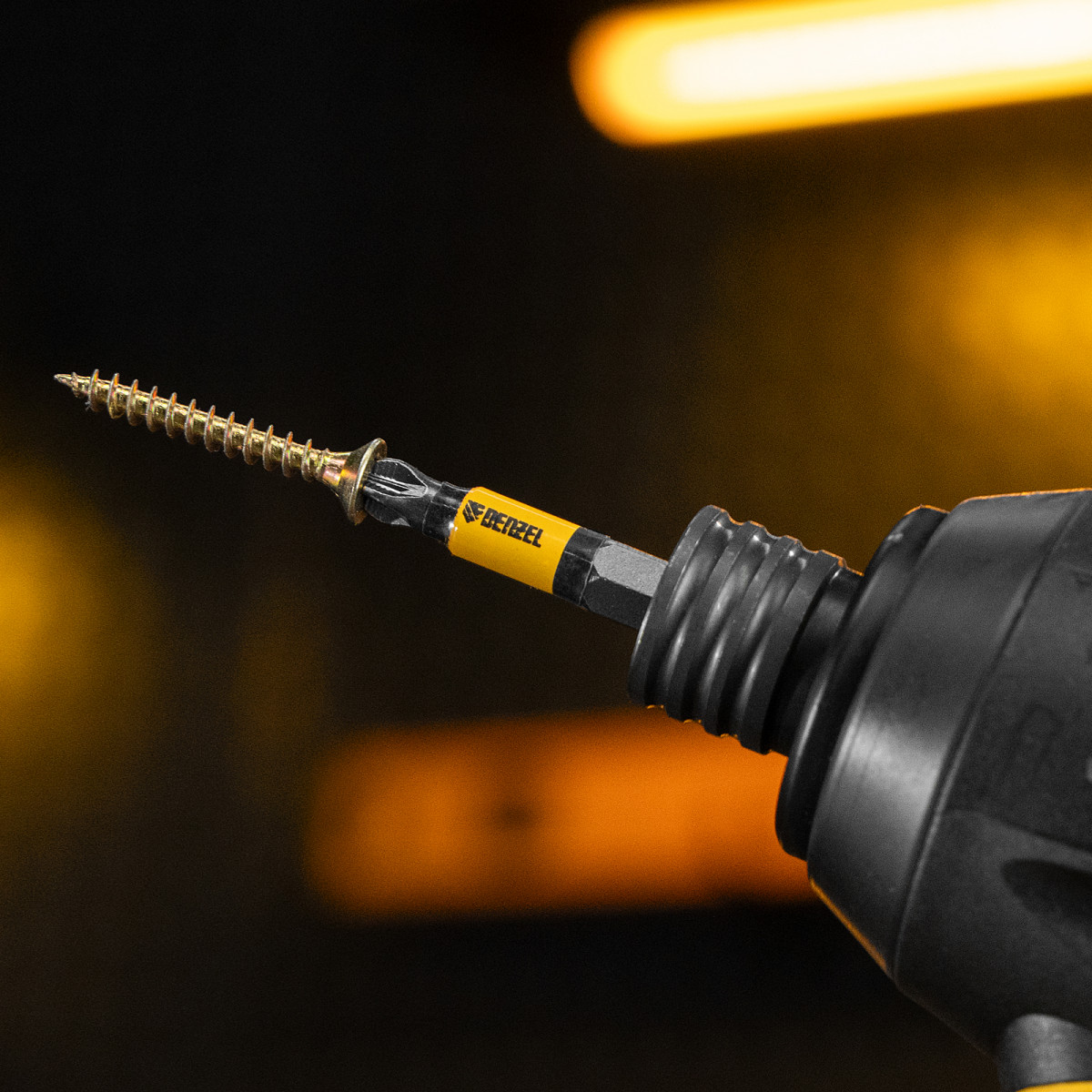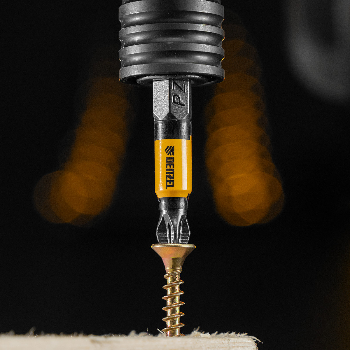 - Защита от подделок — цветное кольцо с логотипом ТМ Denzel на каждой бите подтверждает оригинальность товара.