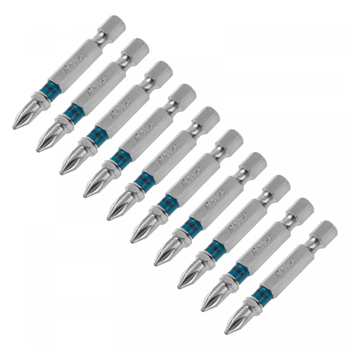 - Износостойкость и долговечность — биты изготовлены из японской легированной стали S2 твердостью 54-58 HRC, поэтому долго сохраняют рабочие свойства.