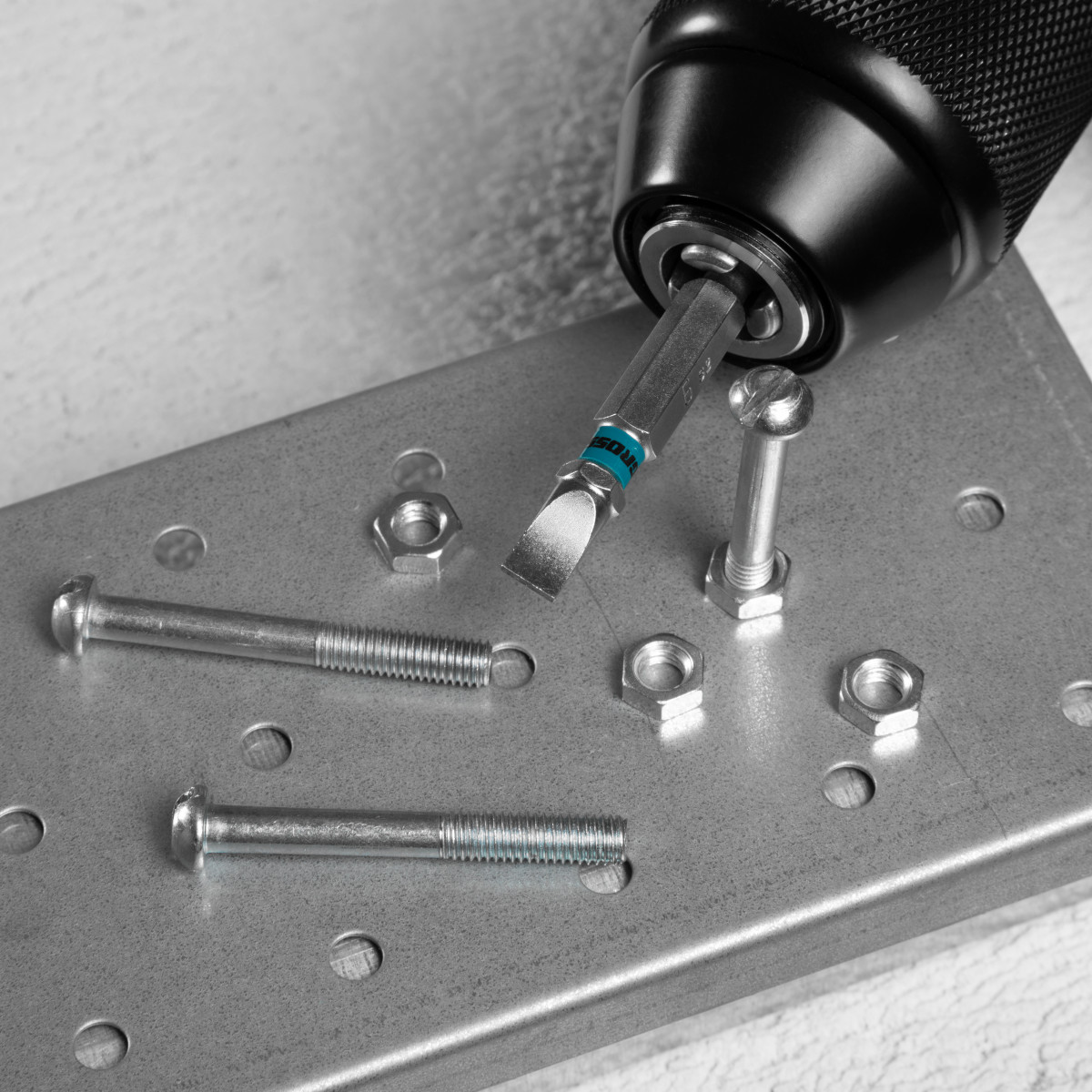 • Коррозионная стойкость — никелевое покрытие защищает биты от воздействия влаги.