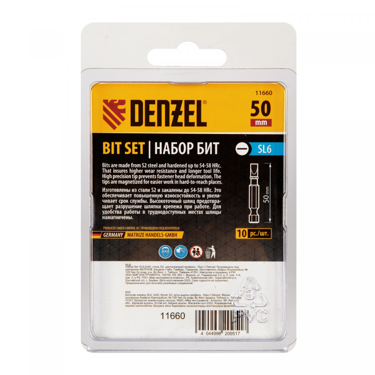- Защита от подделок — цветное кольцо с логотипом ТМ Denzel на каждой бите подтверждает оригинальность товара.