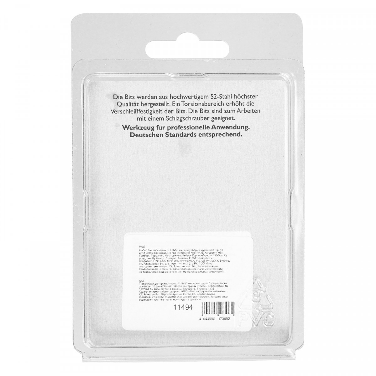 Набор торсионных бит PH3 x 50 мм Gross 11494, 10 шт., предназначен для монтажа и демонтажа резьбовых соединений с помощью ударного шуруповерта. Он незаменим в строительных, слесарных и монтажных работах, в автосервисах, при проведении ремонта в доме. Торсионная зона способна пружинить, за счет чего она частично амортизирует тангенциальный удар от шуруповерта. Такое решение позволяет равномерно распределить нагрузку по бите и избежать поломки шлица.