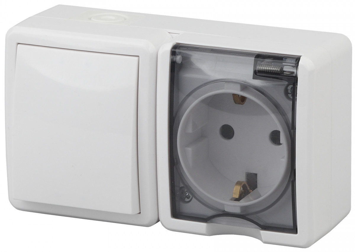 Блок ЭРА розетка+выключатель IP54 16A(10AX)-250В ОУ Эра Эксперт белый 11-7401-01