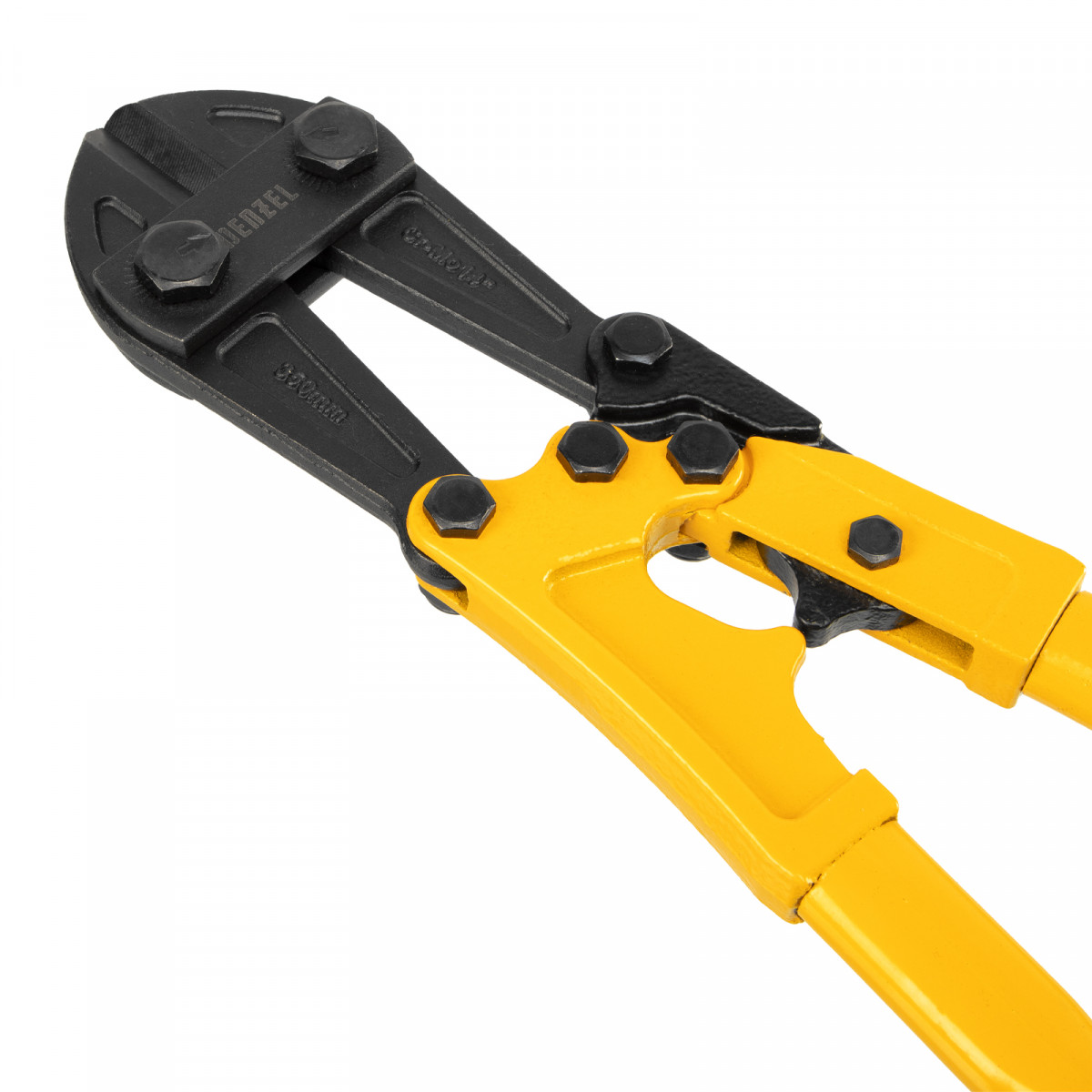 Болторез Denzel 78533 длиной 350 мм (14 дюймов), из стали Cr-Mo, предназначен для перекусывания стальных прутков диаметром 6,4 мм, болтов и шурупов, тросов, разнородной проволоки.