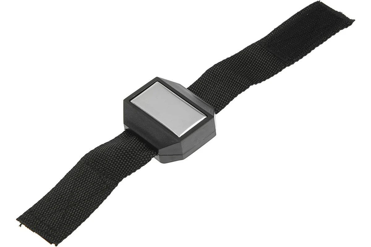 Браслет магнитный применяется для удерживания метизов, иголок, бит и мелких крепежных деталей при выполнении работ. Подходит слесарям, строителям, сварщикам, а так же домашним пользователям.Крупный магнит предотвращает потерю мелких элементов.Ремешок надежно фиксируется на руке с помощью липучки.