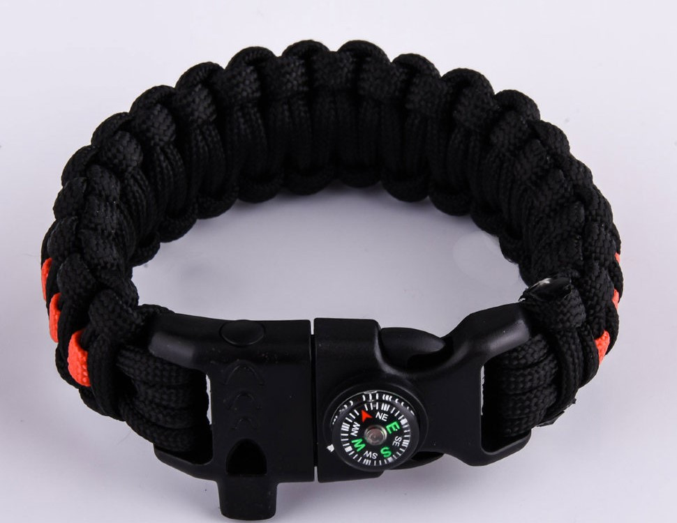 Браслет СЛЕДОПЫТ из паракорда со свистком, компасом, лезвием и огнивом, 26*2 см