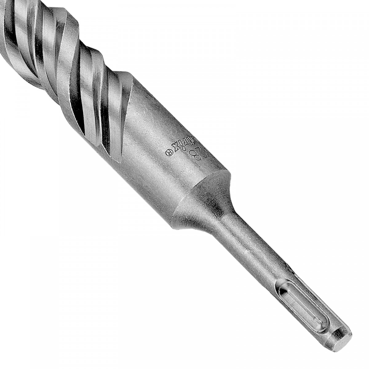 • Рабочая часть изготовлена из легированной стали 40Х с добавлением хрома, поэтому инструмент устойчив к высоким нагрузкам, возникающим при ударном сверлении.