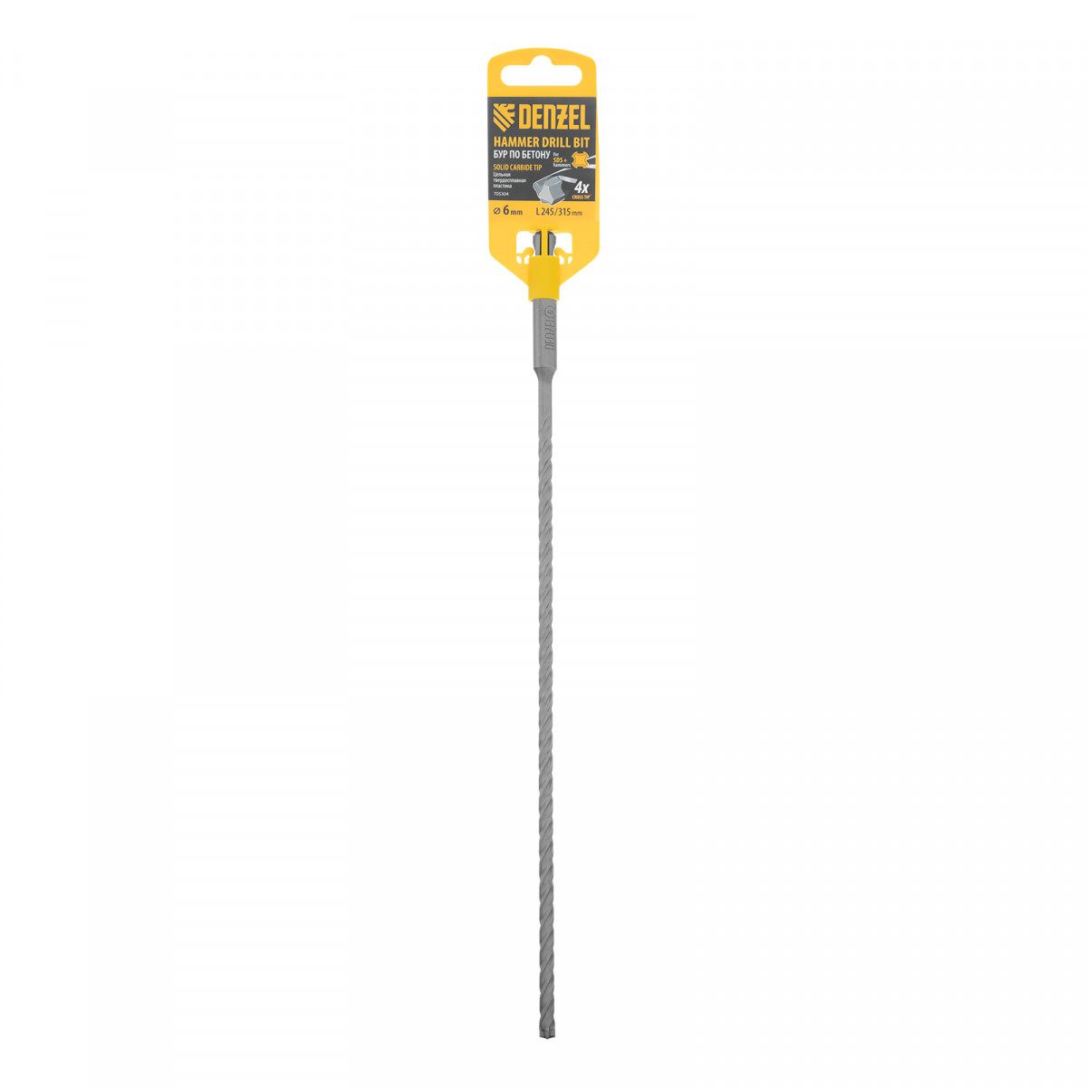 Бур по бетону, цельная крестовая пластина, 6x315 мм, SDS PLUS Denzel