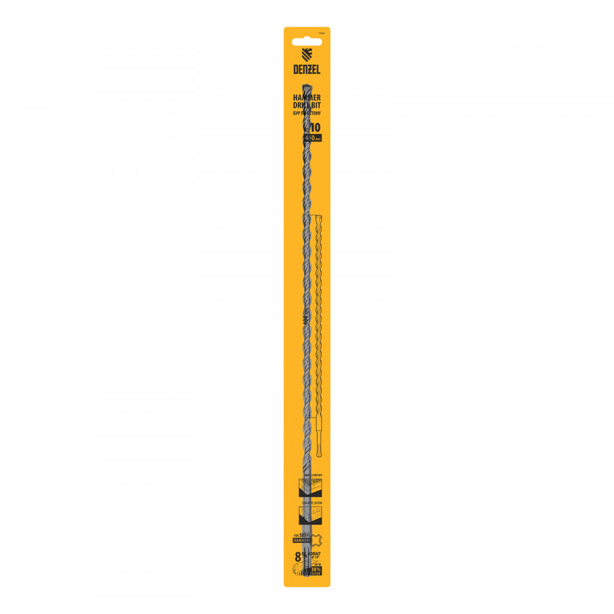 Бур по бетону, двойная спираль, три пылеотводящие кромки, 10 x 460 мм DENZEL