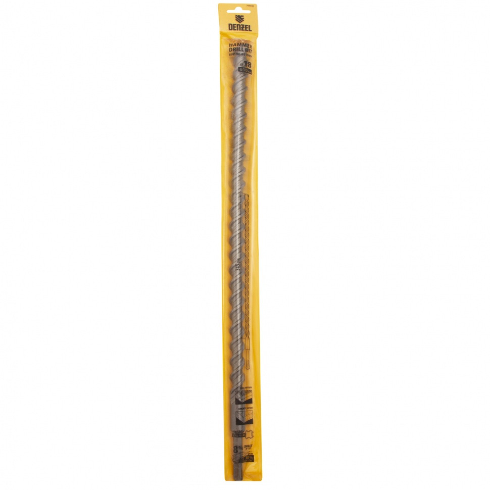Бур по бетону, двойная спираль, три пылеотводящие кромки, 18 x 600 мм DENZEL