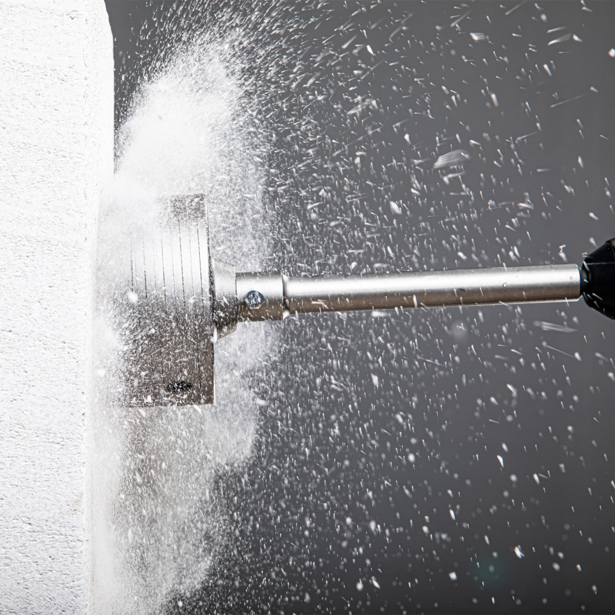• Эффективность — спиральная канавка на корпусе обеспечивает улучшенный отвод продуктов сверления, что снижает нагрузку на перфоратор и повышает скорость работы.