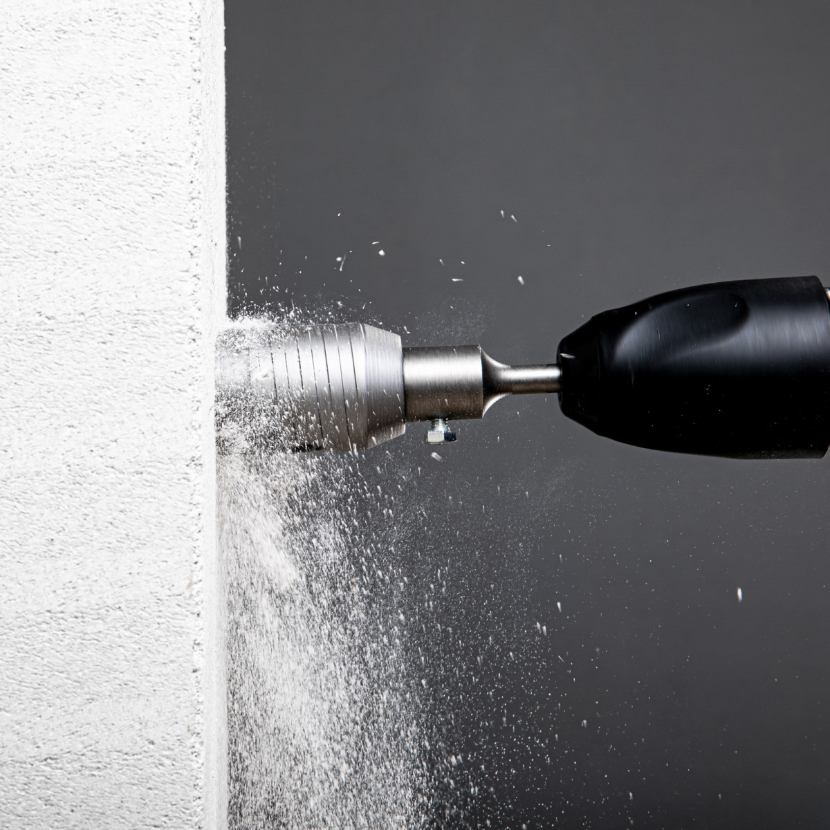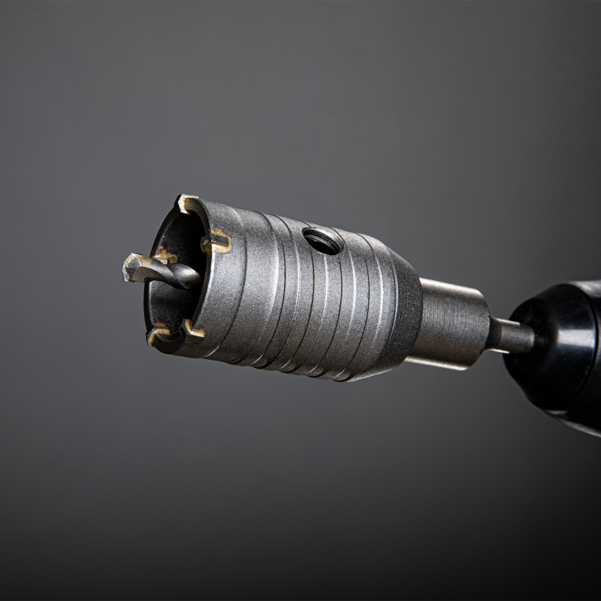 - Эффективность — спиральная канавка на корпусе обеспечивает улучшенный отвод продуктов сверления, что снижает нагрузку на перфоратор и повышает скорость работы.