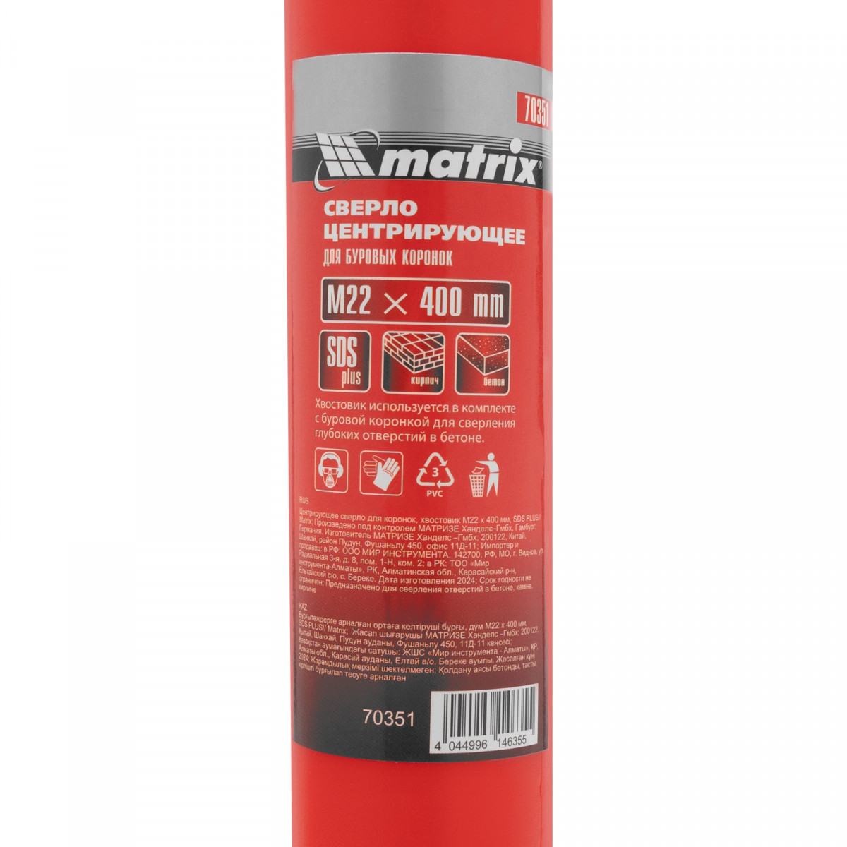 Центрирующее сверло для коронок Matrix 70351 с хвостовиком SDS PLUS длиной 400 мм, с посадкой М22, используется для получения отверстий в бетоне. Позволяет выполнять глубокое засверливание, предотвращает смещение коронки и повышает точность работы.