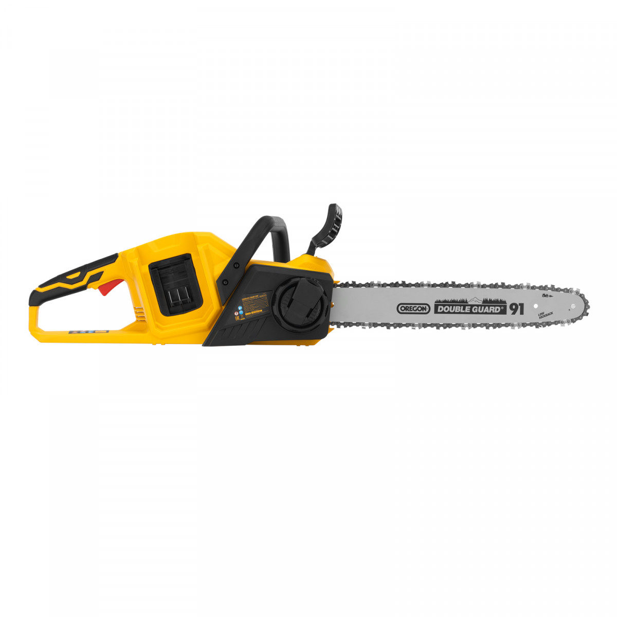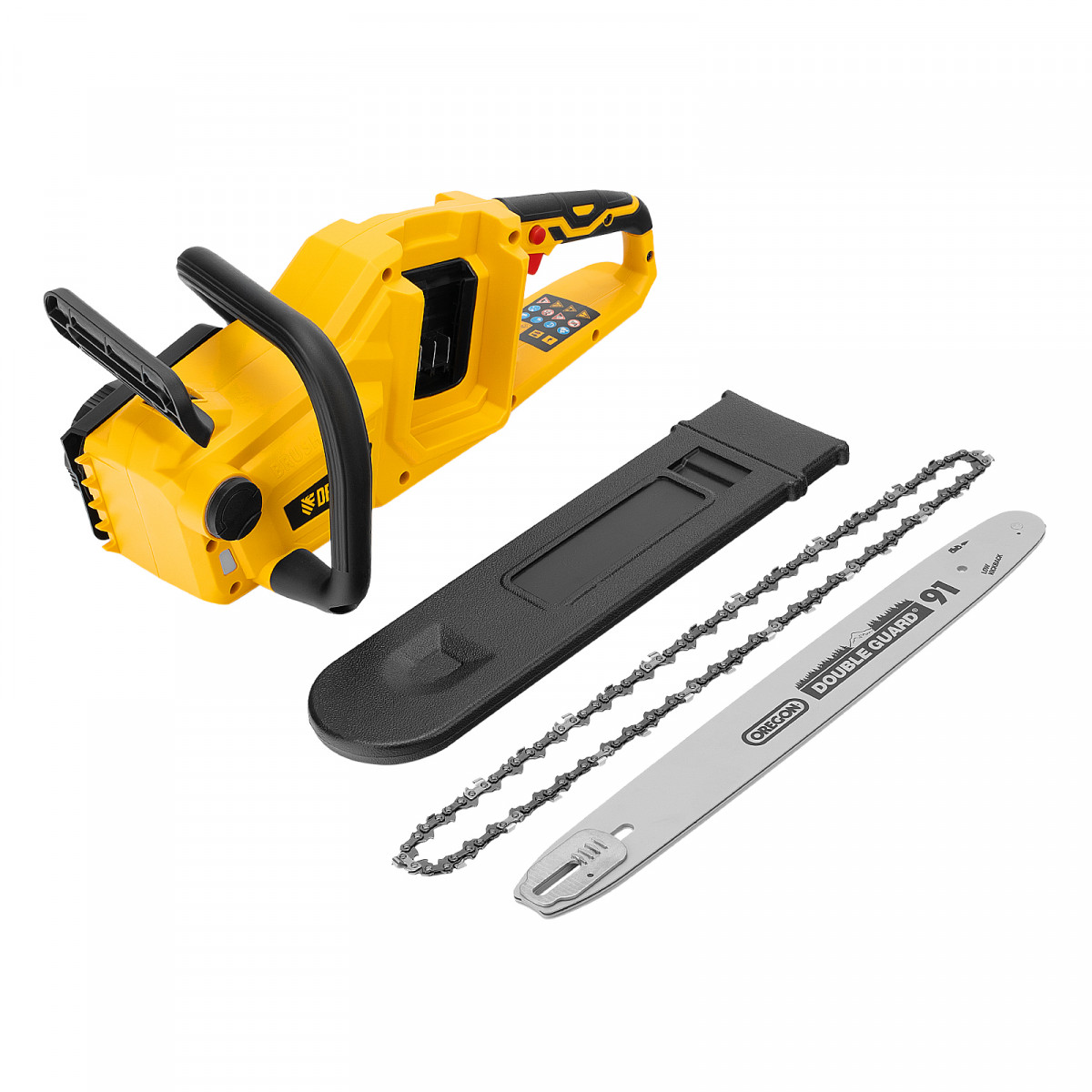 Пила работает на единой платформе Denzel battery system и совместима с аккумуляторами 18 В. Модель поставляется с прочной и легкой шиной OREGON длиной 40 см и цепью с шагом 3/8".