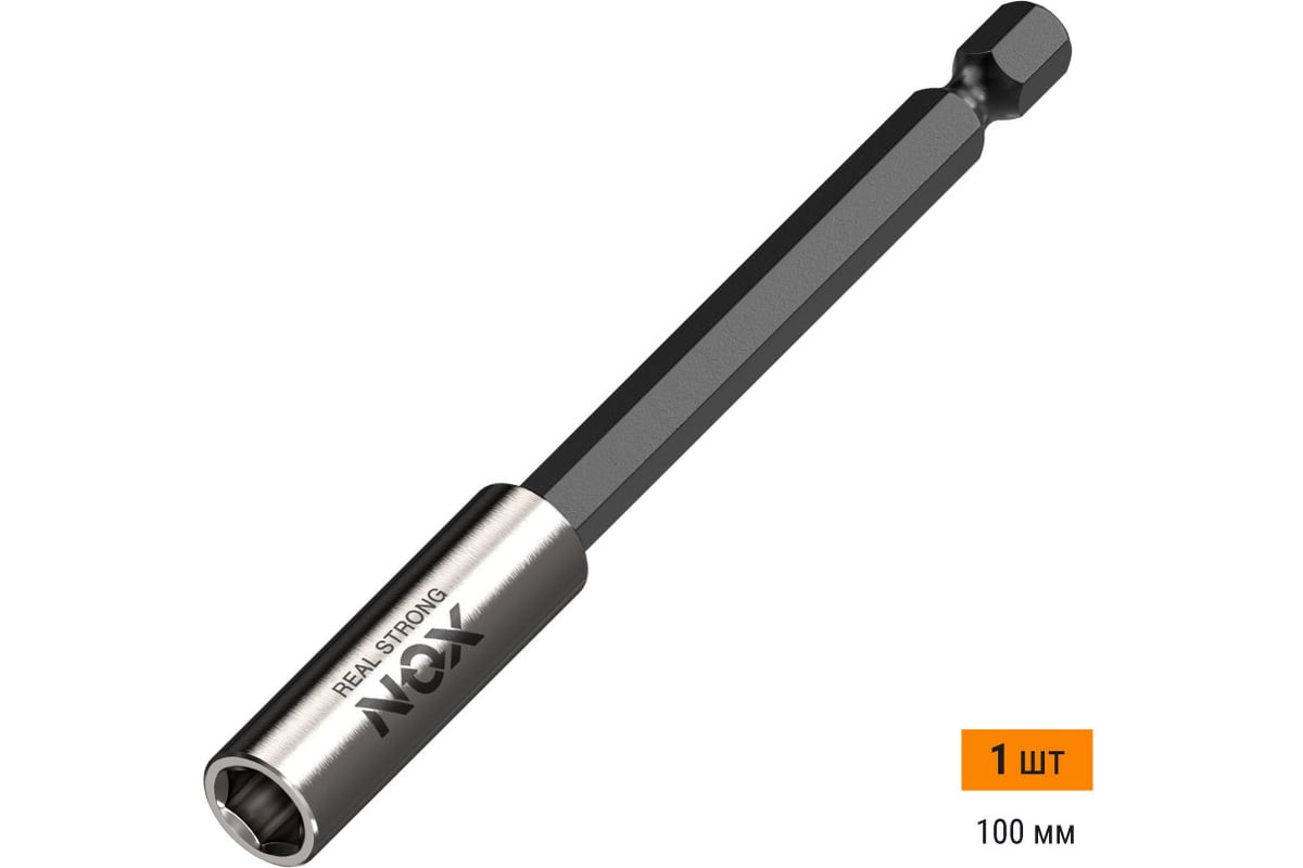 Магнитный держательNOXHOLDER предназначен для бит и другой оснастки. Длина 100 мм. Оснащён мощным неодимовым магнитом, облегчает работу и ускоряет процесс замены бит. Шестигранный хвостовик ¼ HEX исключает проскальзывание оснастки в патроне электроинструмента. Подходит для работы электродрелью со стандартным трёхкулачковым зажимным патроном и шуруповёртом с шестигранным патроном для быстрой смены насадки.