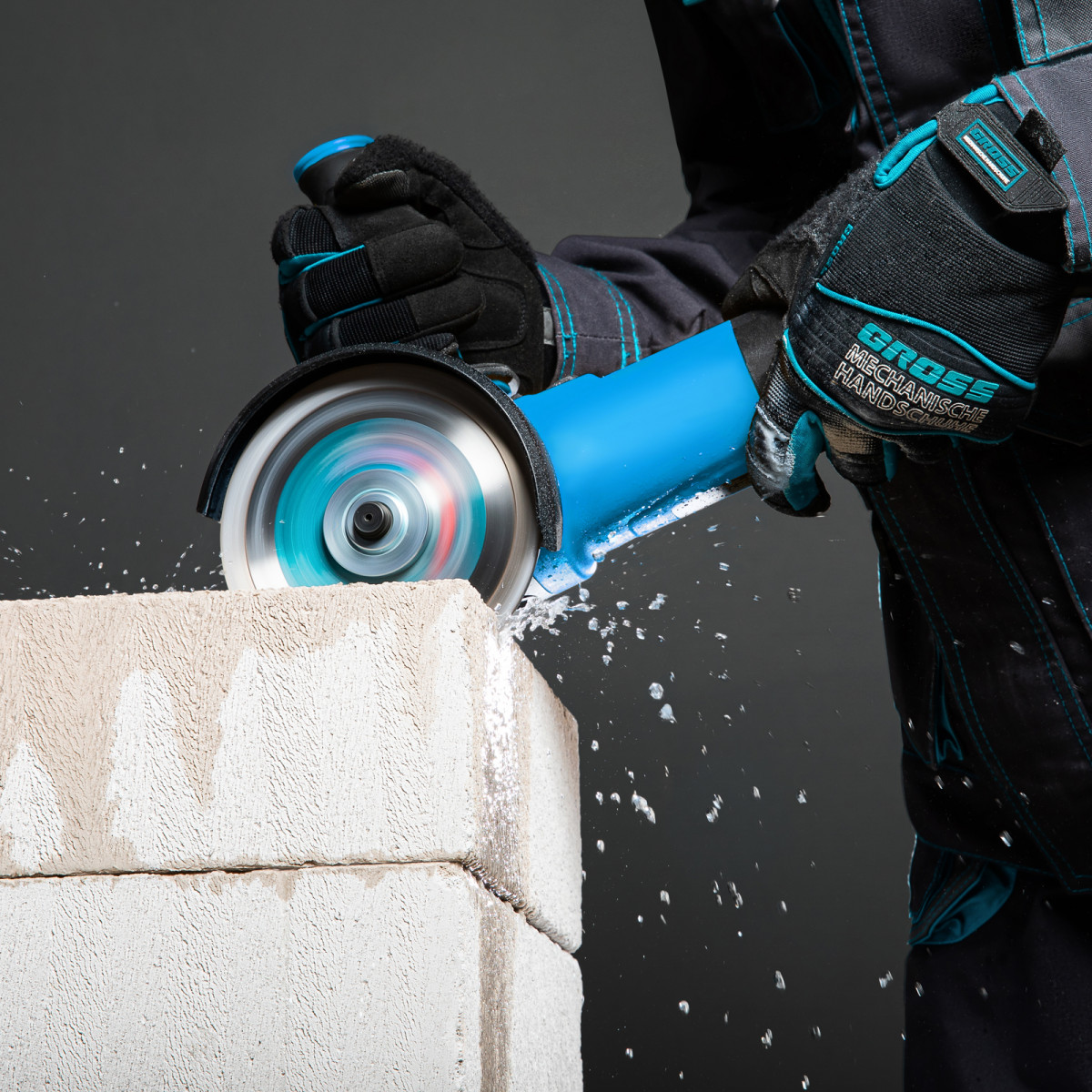 Сплошной алмазный диск Gross ф125 х 22,2 мм 73038 с лазерной перфорацией, для мокрого резания, используется в качестве расходника на УШМ или плиткорезах с посадочным размером 22,2 мм. Оптимальное соотношение серебра, кобальта и других качественных компонентов в металлической связке позволяет работать с гранитом, керамикой, керамогранитом, мрамором, натуральным и искусственным камнем. Метод мокрого шлифования подразумевает использование водяного охлаждения, что способствует снижению перегрева и эффективному отводу пыли.