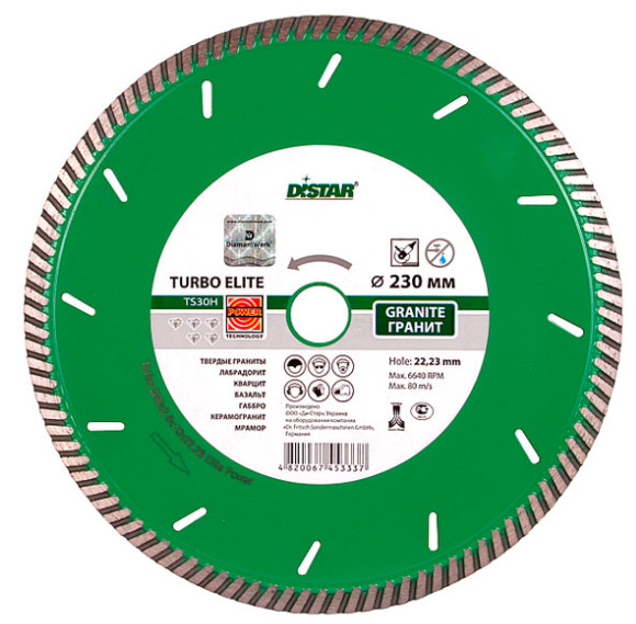 Диск отрезной алмазный предусматривает турбо-кромку и имеет диаметр 125 мм. Он применяется при работе на болгарке и предназначен специально для резки цветных пород гранита, а также твердого песчаника. Предусматривает профессиональное использование. При резке не нуждается в охлаждении. Имеет высокий ресурс и хорошую скорость резки. Толщина алмазного слоя составляет 2,2 мм.