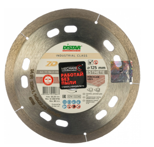 Диск алмазный сплошной Esthete DiStar 11115421010 предназначен для угловых шлифовальных машин. Применяется для сухой резки керамической плитки с декоративным покрытием. Диск обеспечивает точный, аккуратный рез. Корпус диска усилен фланцами. Высота алмазного слоя – 8 мм.