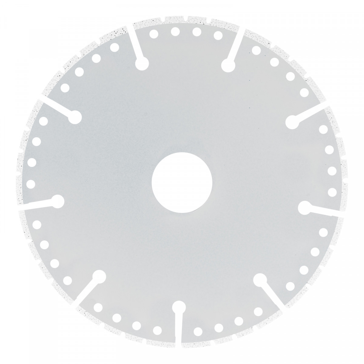 • Работа без подачи воды — благодаря сегментированной рабочей части и дополнительным отверстиям на корпусе диск активно охлаждается в процессе резания.
