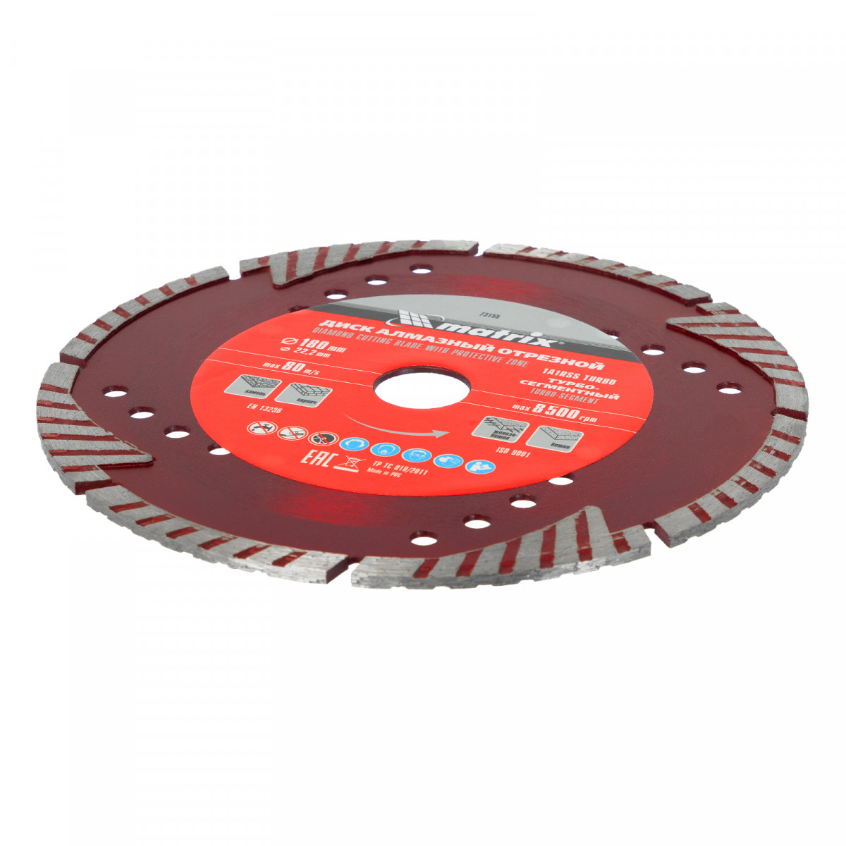 Диск алмазный, отрезной сегментный с защитными сект, 180 х 22.2 мм, сухая резка Matrix Professional