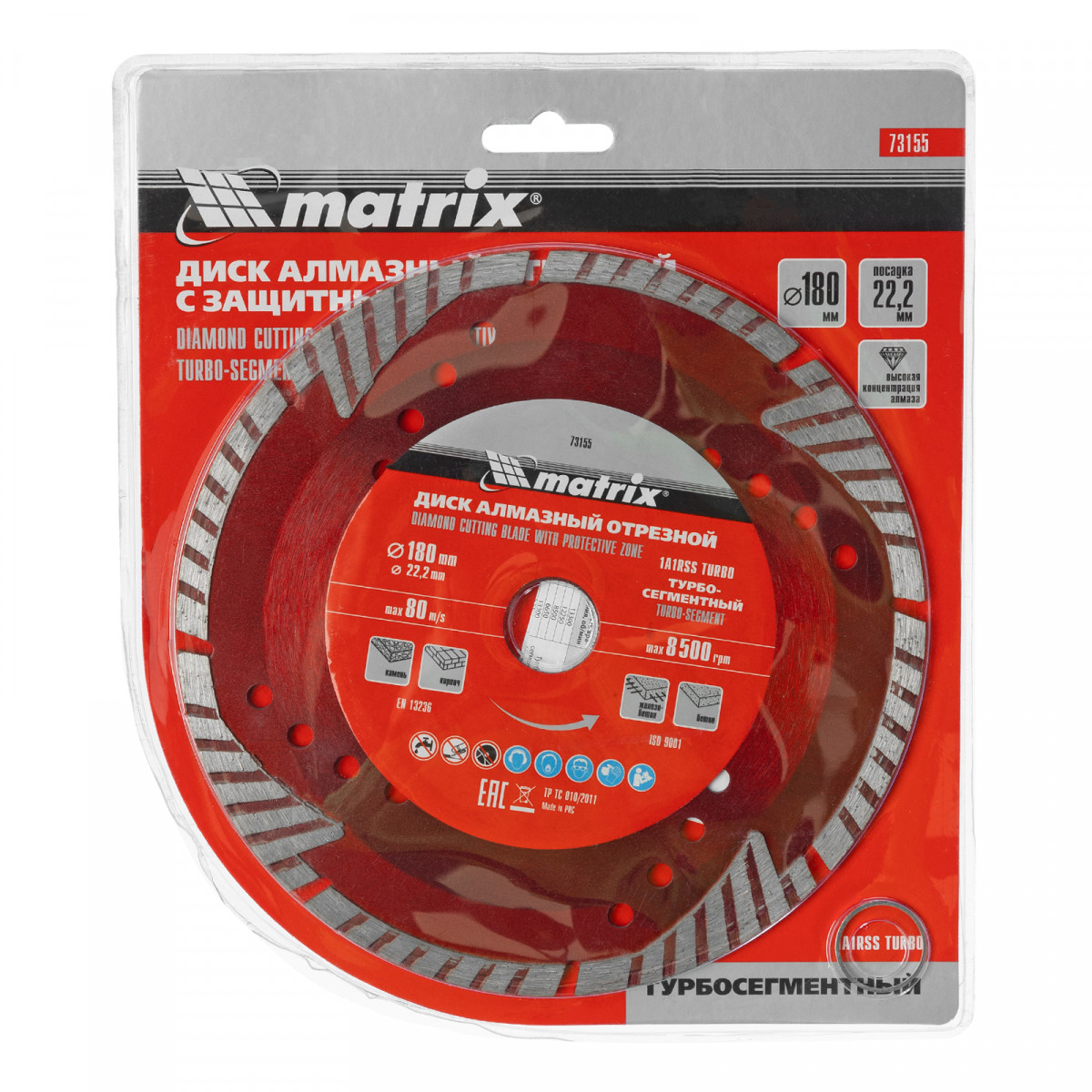 Алмазный отрезной сегментный диск Matrix 73155 с защитными секторами, диаметром 180 х 22,2 мм, применяется для сухой резки бетона разной прочности, камня, кирпича, шлакоблока и тротуарной плитки. Используется как оснастка для углошлифовальных машин с соответствующим посадочным диаметром. Диск изготовлен методом холодного прессования и выдерживает повышенные нагрузки при прохождении арматуры в слабоармированном железобетоне.