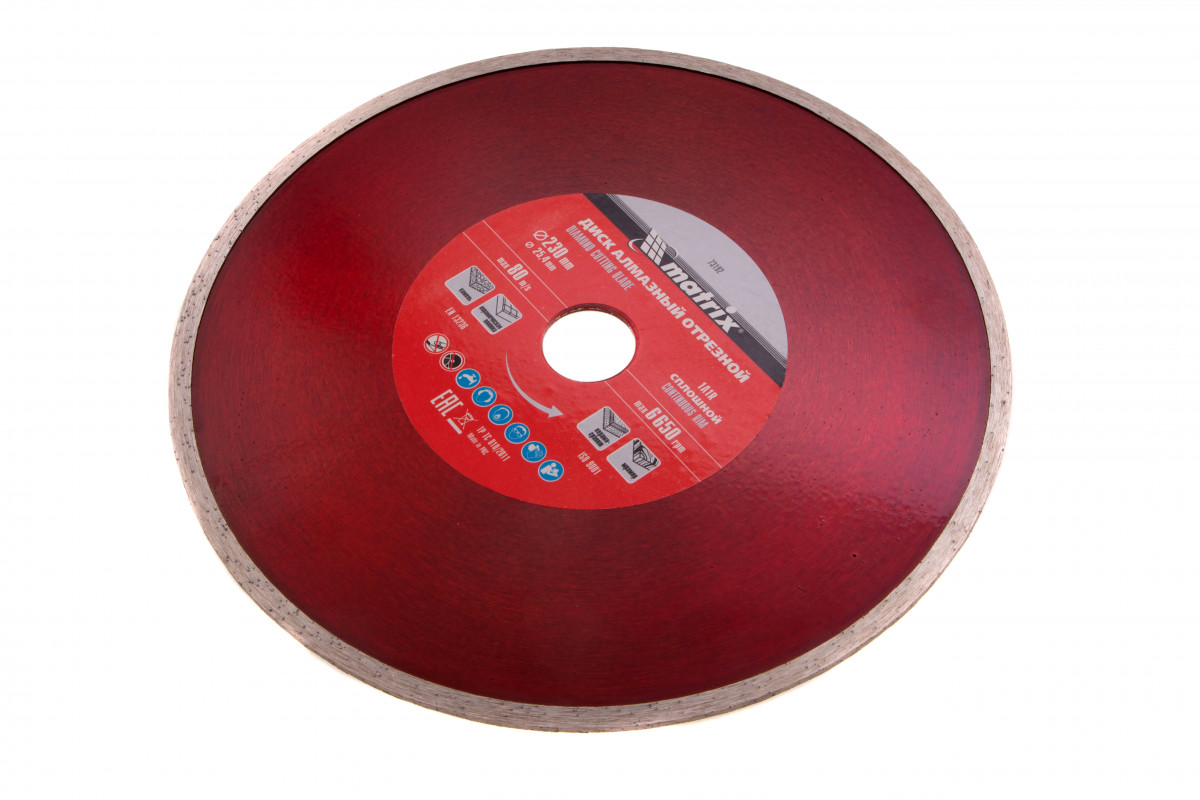 Отрезной алмазный сплошной диск Matrix 73192 диаметром 230 х 25,4 мм предназначен для мокрой резки мрамора, керамической плитки, керамогранита, натурального или искусственного камня. Устанавливается на углошлифовальную машину или плиткорез с посадочным диаметром 25,4 мм. Благодаря использованию водяного охлаждения улучшается качество реза, а также продлевается срок службы диска.
