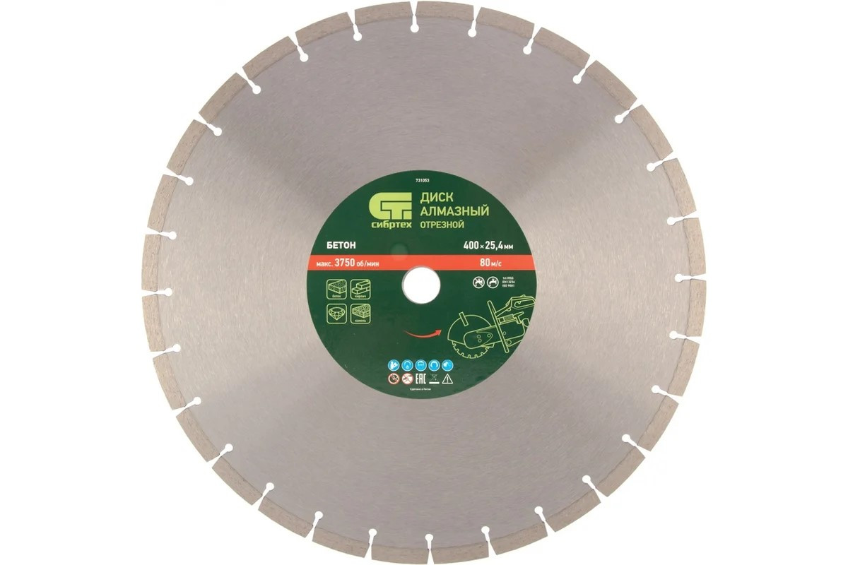 Диск алмазный по бетону (400x25.4 мм; сухой/мокрый рез) СИБРТЕХ