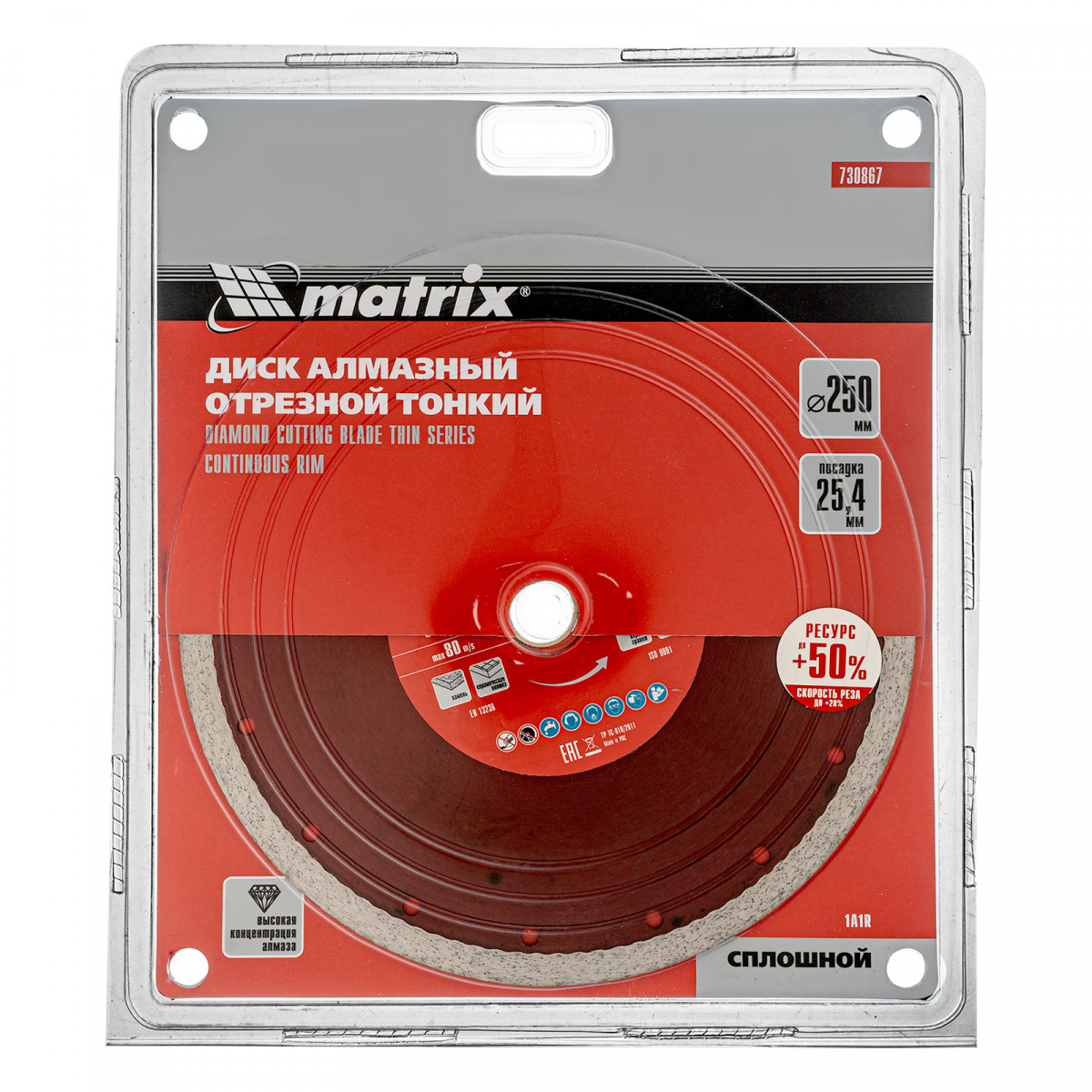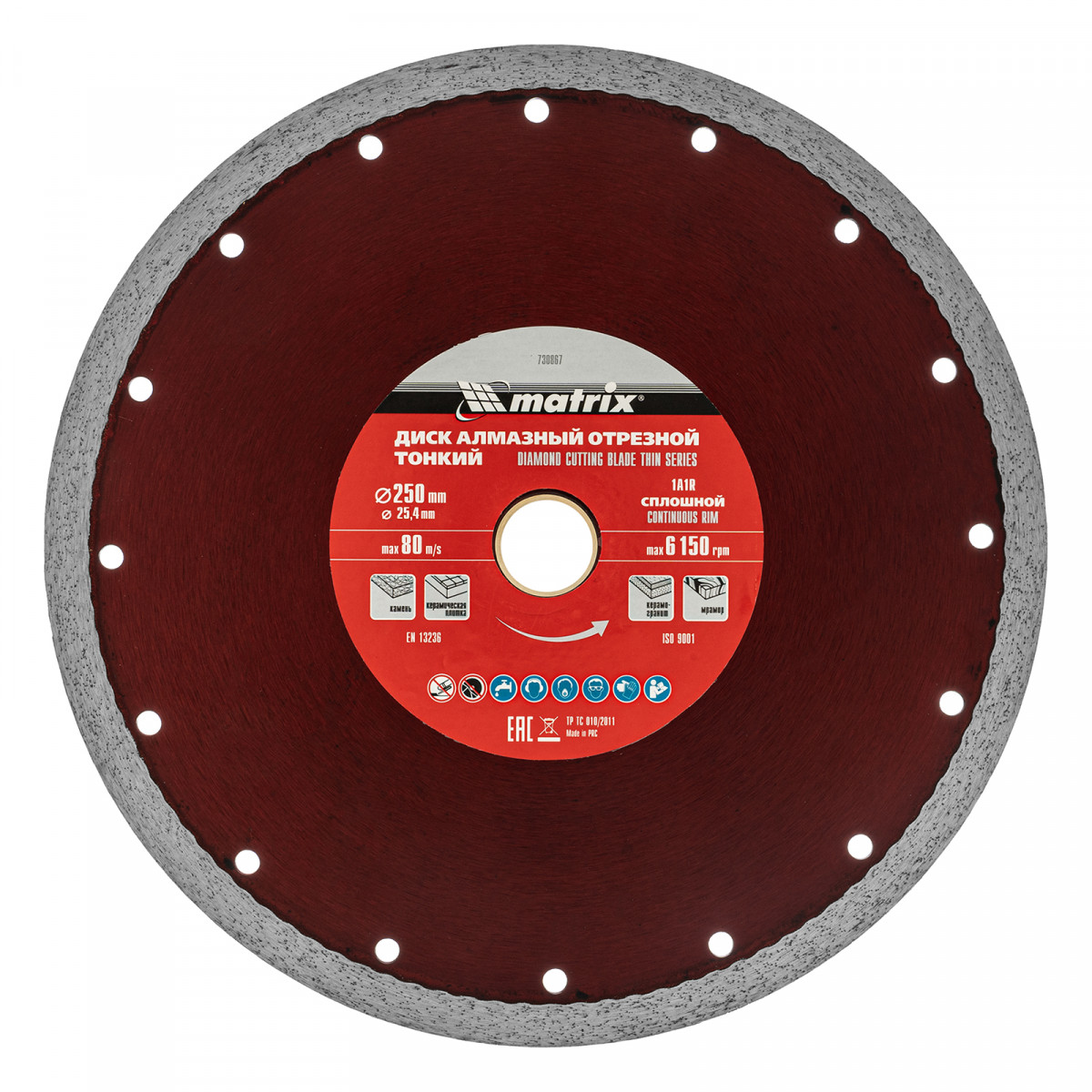 Диск алмазный сплошной, тонкий, 250 х 25.4 мм, мокрое резание Matrix