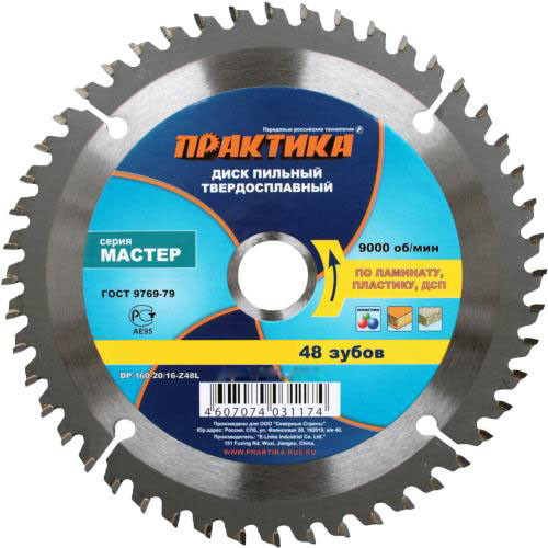 Диск пильный 165*30/20мм 48 зубьев по ламинату, пластику, ДСП "Практика"