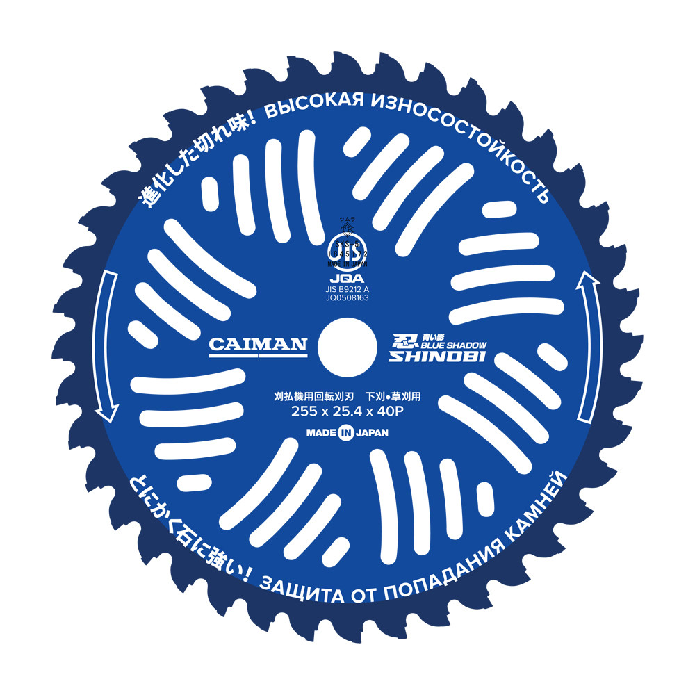 Стальной японский диск Shinobi Blue Shadow Caiman 10" 255x25x40P для бензокос (арт. 0325C).Диск предназначен для срезания жесткой травы и кустарника, при этом он отличается высоким ресурсом и длительным временем работы без заточки. Он соответствует японским промышленным стандартам JIS и полностью готов к работе (заточка не требуется).