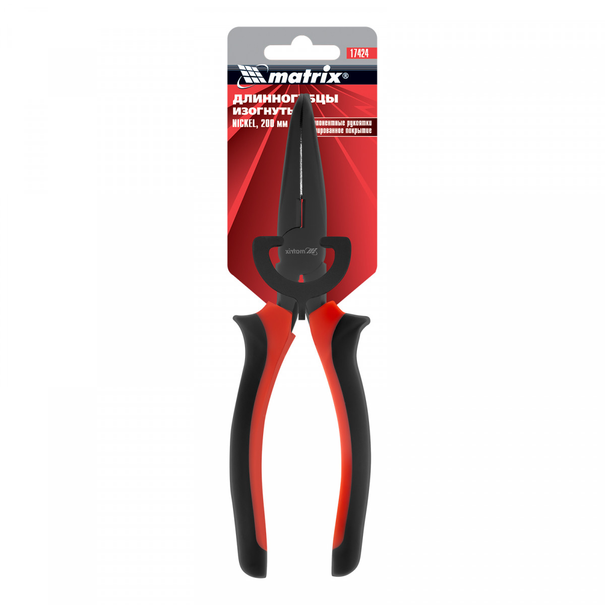 Длинногубцы изогнутые Black Nickel, 200 мм, двухкомпонентные рукоятки Matrix