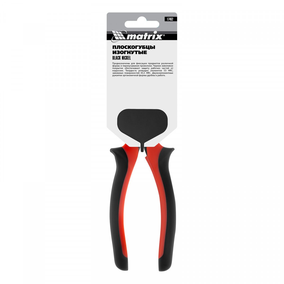Изогнутые длинногубцы Matrix Black Nickel 17462 длиной 200 мм, с двухкомпонентными рукоятками, за счет продуманной формы облегчают работу в труднодоступных местах. Инструмент используют для захвата и удерживания гвоздей, проводов, а также для перерезания проволоки. Длинногубцы пригодятся во время слесарных, монтажных и ремонтных работ.