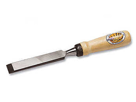 Лезвие стамески изготовлено из инструментальной углеродистой стали У7–У8. Ручка из древесины обработана бесцветным лаком для защиты от рассыхания и набухания. Стамеска используется для выполнения точных вырезов, подгонки отверстий, выемок на древесине.