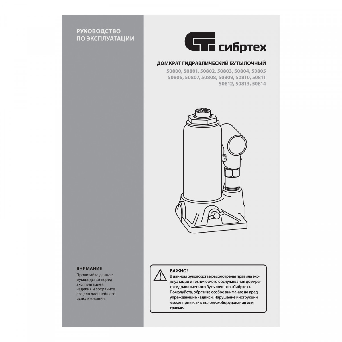 Домкрат гидравлический бутылочный, 10 т, 190-370 мм Сибртех