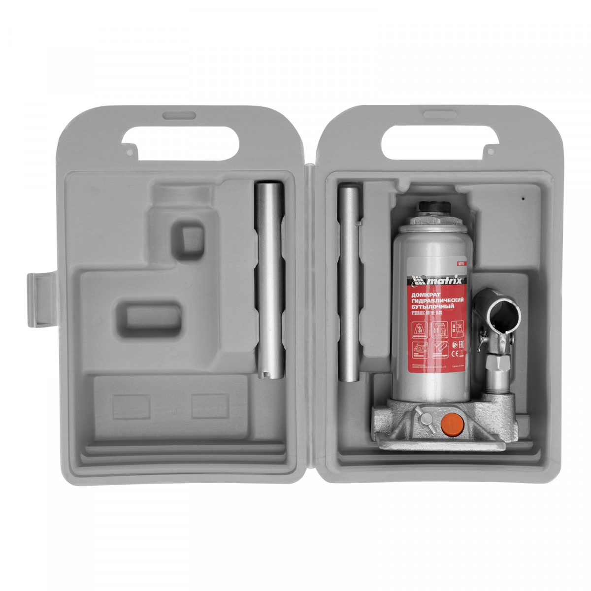 Домкрат гидравлический бутылочный, 3 т, h подъема 178-343 мм, в пластиковом кейсе Matrix