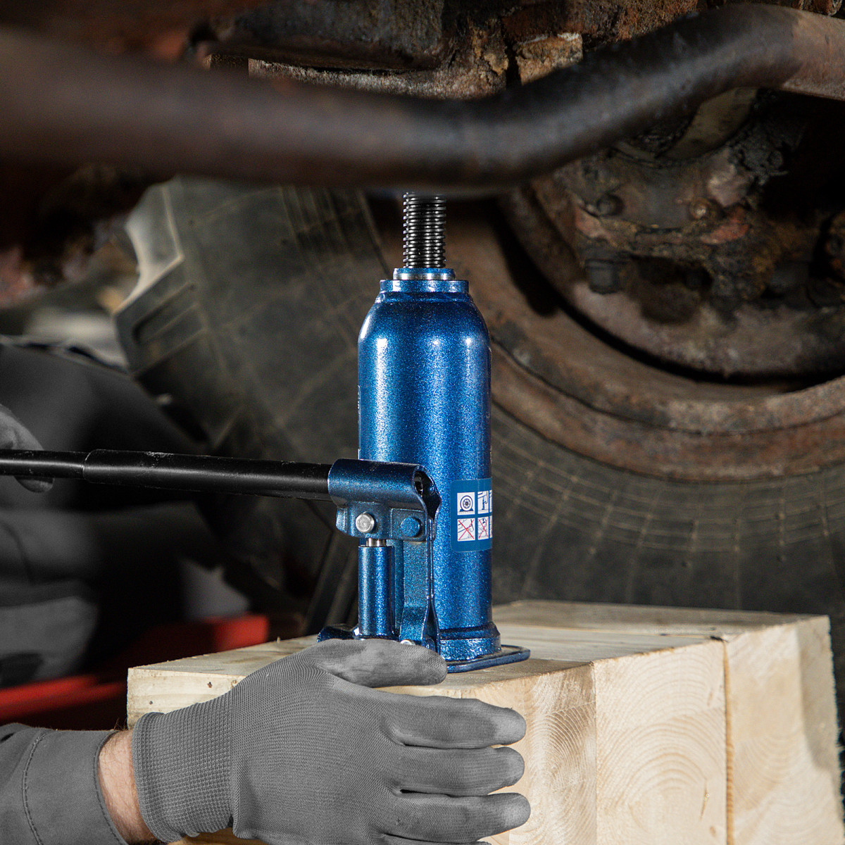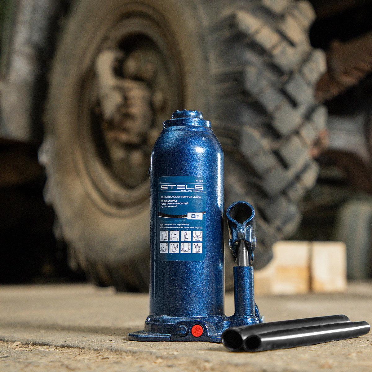• Безопасная эксплуатация — благодаря предохранительному клапану домкрат не поднимает грузы тяжелее 8000 кг.