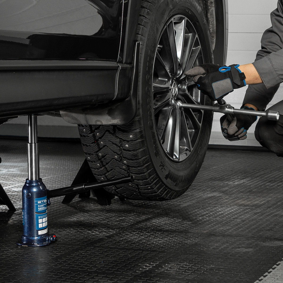 • Малый вес 2,25 кг — домкрат легко перемещать и перевозить в багажнике машины.