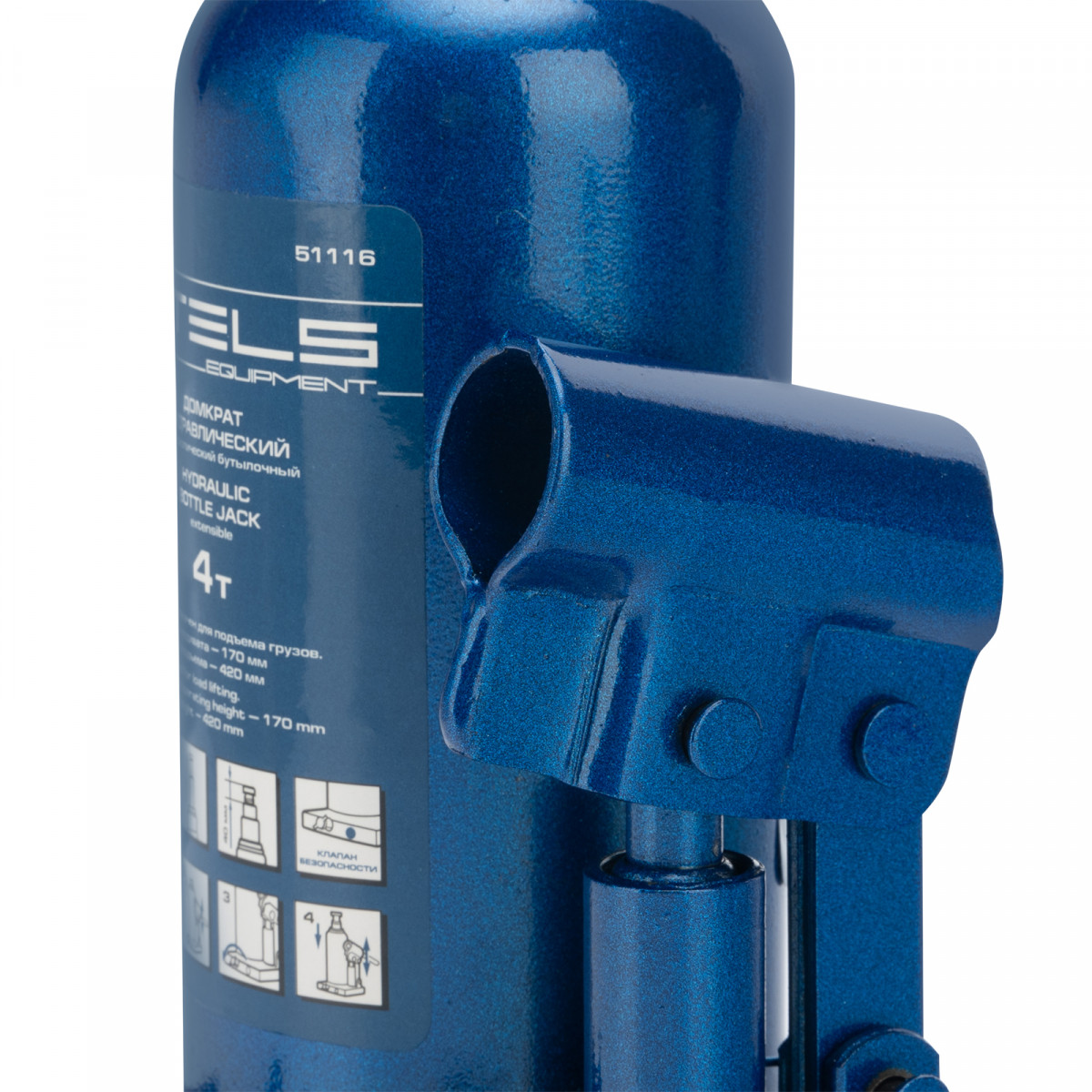 Гидравлический бутылочный телескопический домкрат Stels 51116 используется для поднятия грузов весом до 4 т с на высоту 170-420 мм. Не требует больших усилий и оптимален для автомобилей с большим клиренсом. Домкрат можно использовать в гараже для самостоятельного ремонта машины или в автосервисе для решения профессиональных задач.