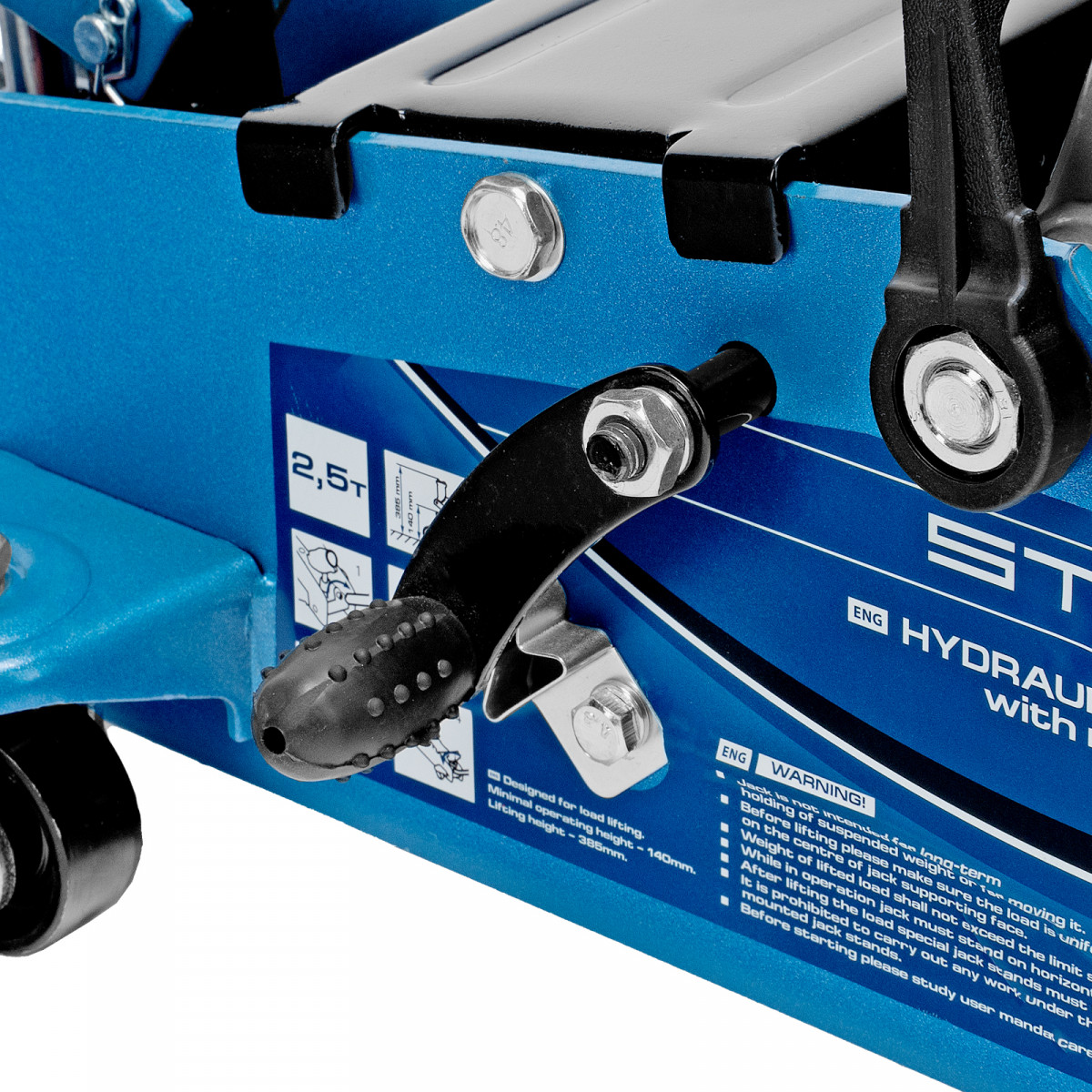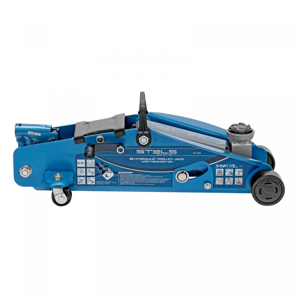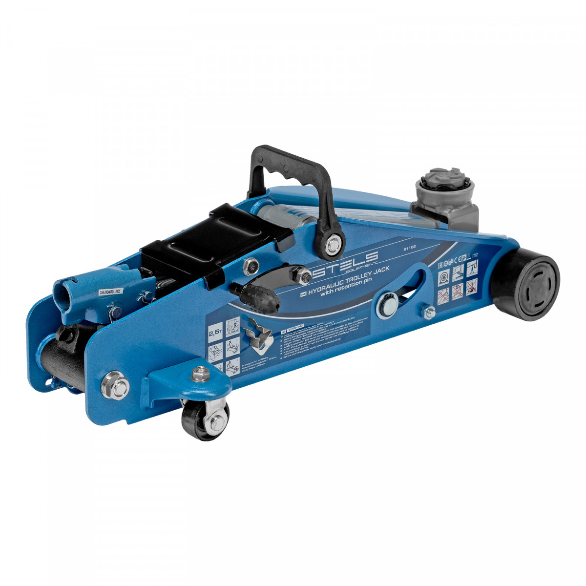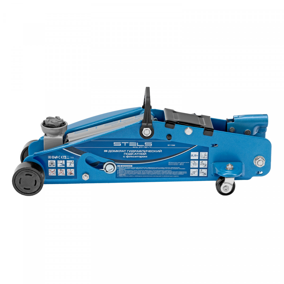 Подкатной гидравлический домкрат Stels Safety Pin 51152 с фиксатором, с высотой подхвата 140 мм, позволяет поднимать грузы весом до 2,5 т на высоту 385 мм. За счет низкого подхвата используется для обслуживания автомашин со стандартным дорожным просветом. Домкрат подходит для самостоятельного обслуживания авто.